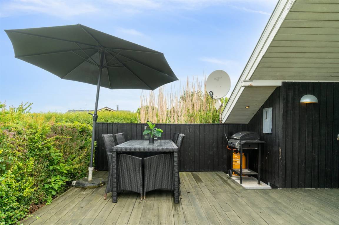 DraußenDie Ferienunterkunft liegt auf einem 1213 m² großen Naturgrundstück. Die Entfernung zum Meer beträgt 400 m. Die nächste Einkaufsmöglichkeit liegt 5000 m entfernt. In einem Abstand von 5000 m gibt es einen Golfplatz. Es steht ein offenes Terrassenareal zur Verfügung. Außerdem gibt es überdachte Terrasse. Trampolin. Es steht ein Grill zur Verfügung. Es steht ein Carport zur Verfügung. Parkplatz auf dem Grundstück.