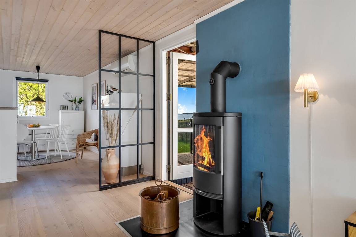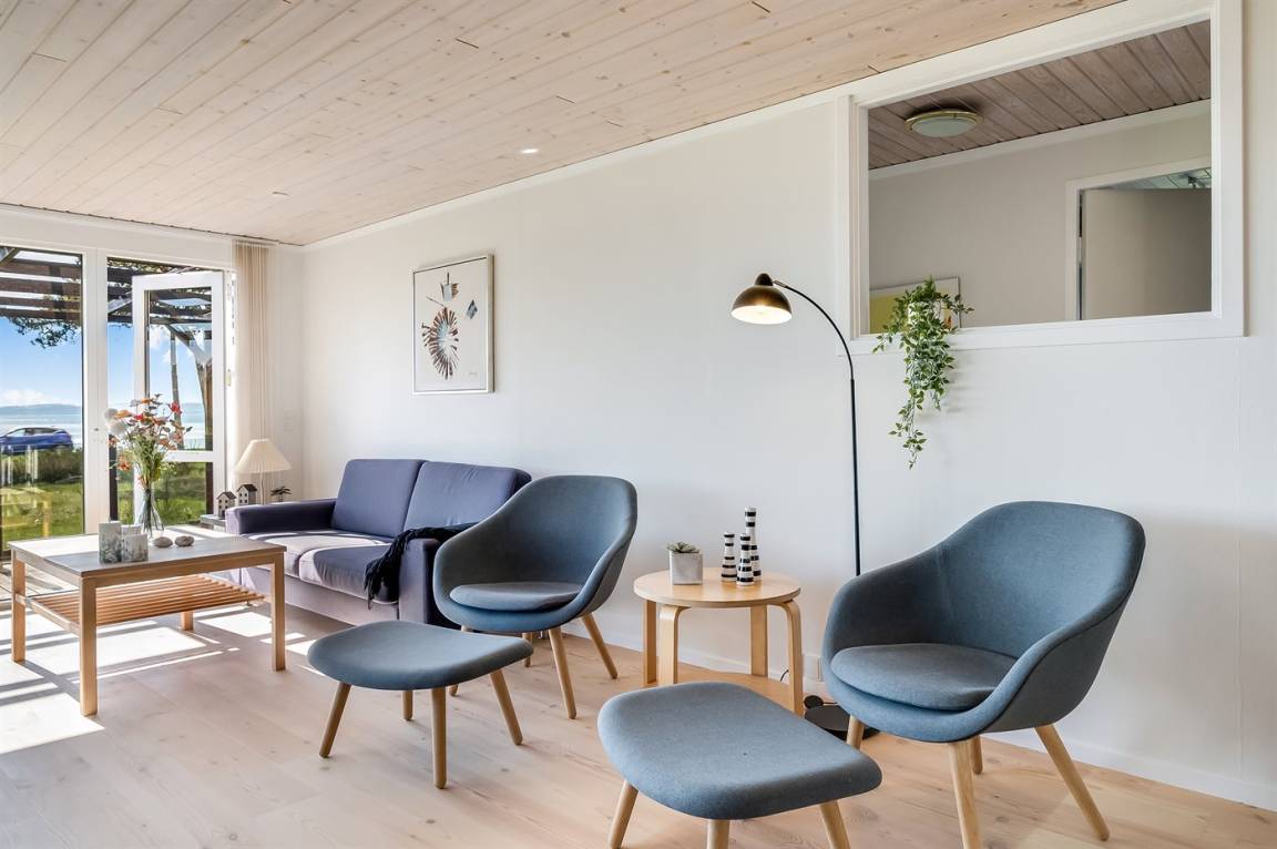 In erster Reihe zum Wasser liegt dieses gemütliche, schwarze Ferienhaus aus Holz mit einem traumhaften Ausblick über die Bucht "Ebeltoft Vig". Das Haus ist gemütlich eingerichtet und besticht besonders durch die vielen Terrassen und gemütlichen Ecken, in denen du je nach Wunsch Windschutz, Sonne oder Schatten findest.