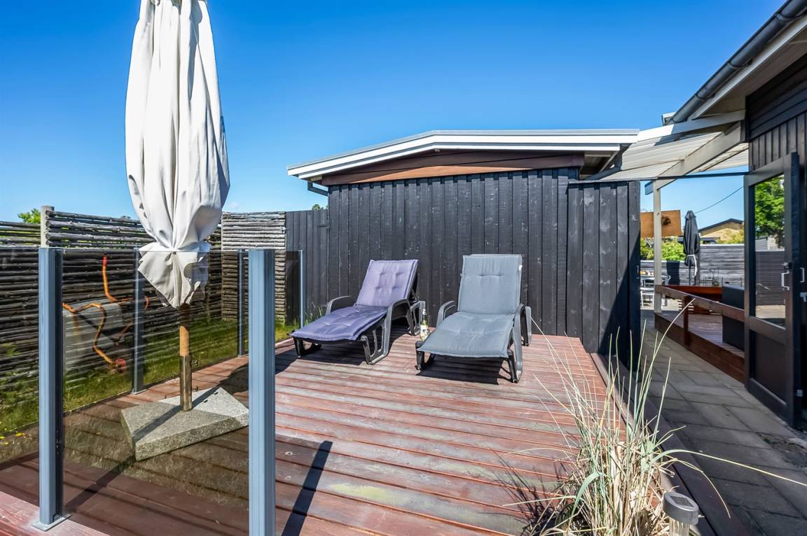 DraußenDie Ferienunterkunft liegt auf einem 1090 m² großen Gartengrundstück. Die Entfernung zum Meer beträgt 50 m. Die nächste Einkaufsmöglichkeit liegt 400 m entfernt. Es steht ein überdachtes und geschlossenes Terrassenareal zur Verfügung. Es steht ein Grill zur Verfügung. Es steht ein Carport zur Verfügung. Parkplatz auf dem Grundstück.