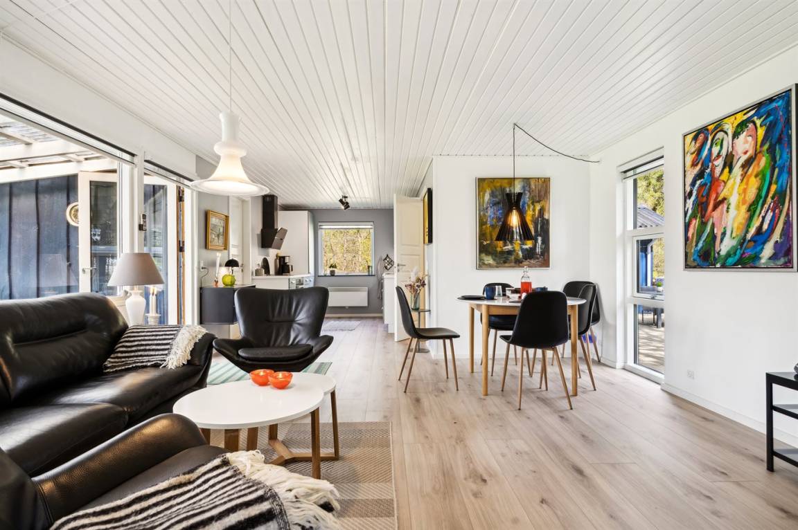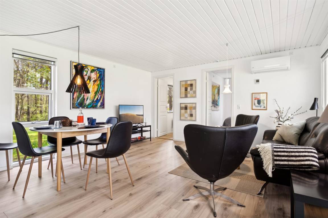 Willkommen in diesem gemütlichen Ferienhaus in Fuglslev. Das Haus verfügt über einen Außenpool, der vom 1. Mai bis zum 30. September genutzt werden kann, und ist ansonsten gemütlich und charmant eingerichtet. Das Haus hat 4 gute Zimmer, darunter 1 Gästehaus, und bietet Platz für bis zu 7 Feriengäste - ideal für die große Familie. Das Haus liegt auf einem großen Grundstück mit guten Büschen und Bäumen, sodass man den Außenpool und den Garten in aller Ruhe genießen kann.