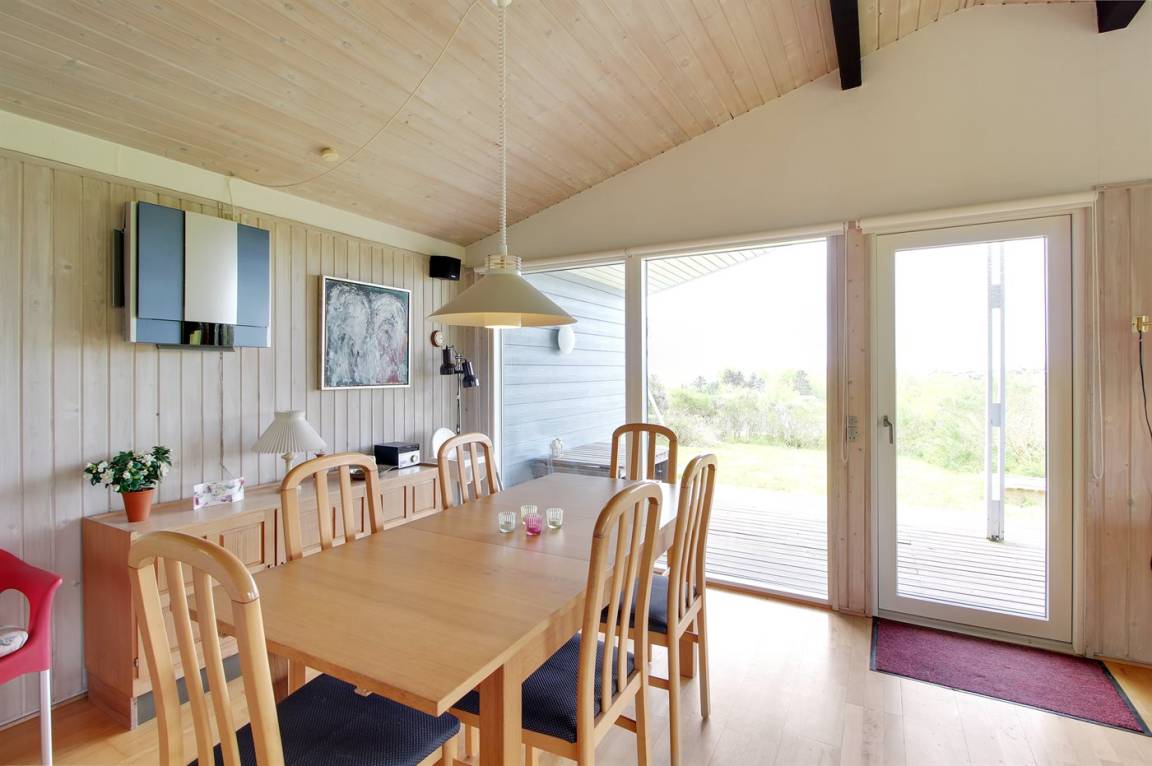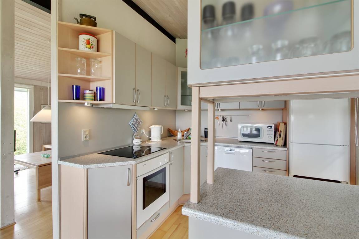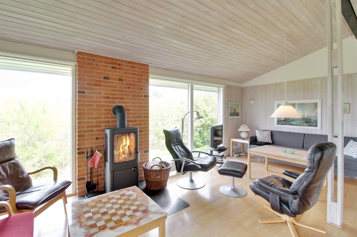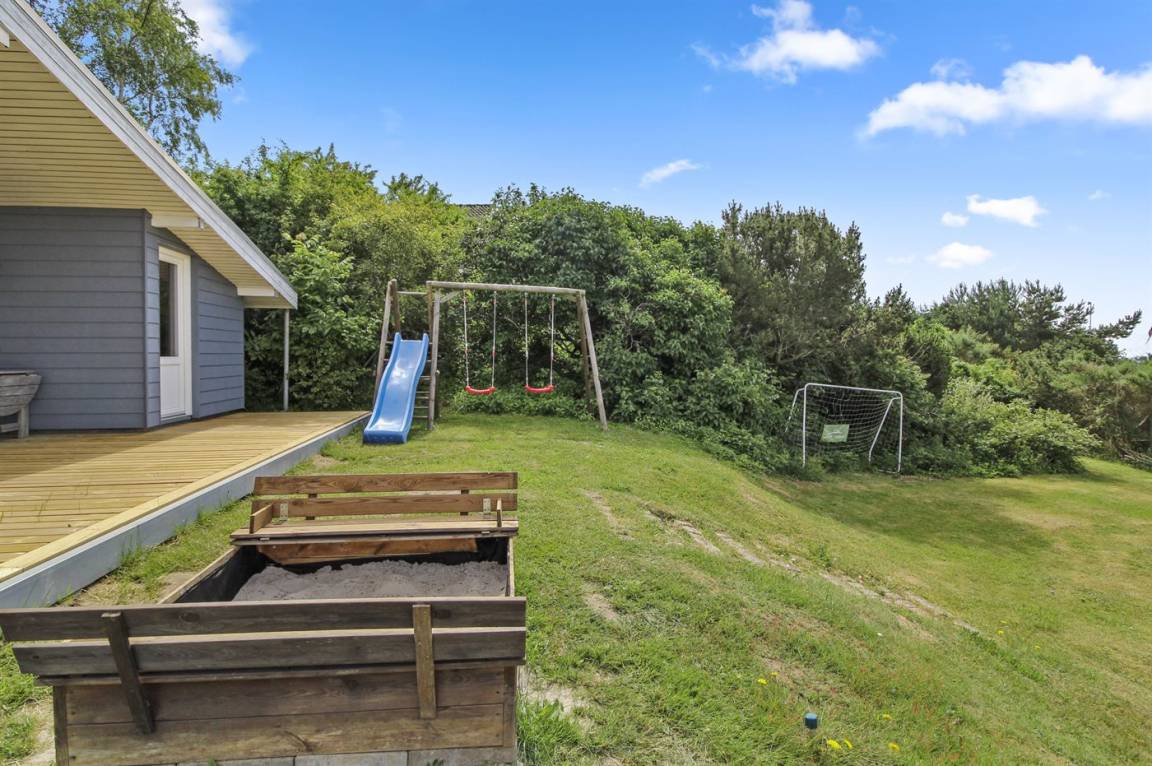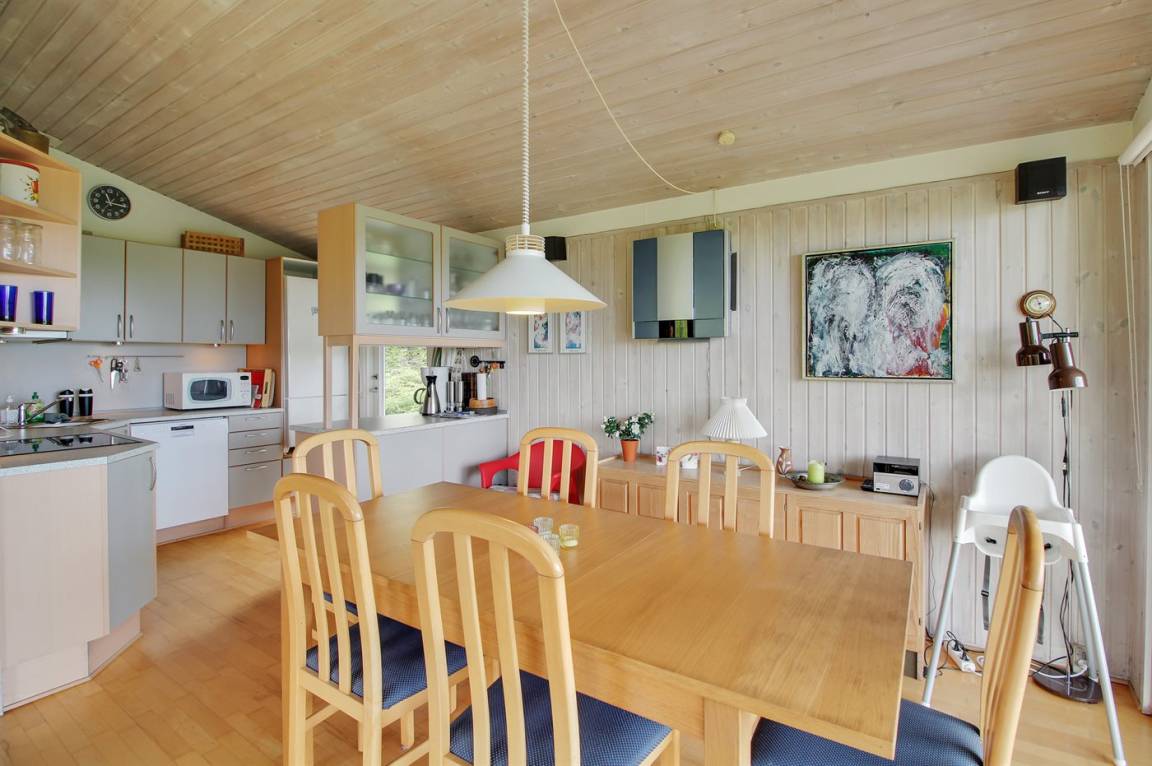 Ein hell eingerichtetes Ferienhaus, das auf einem hügeligen Naturgrundstück liegt. Von der überdachten Terrasse haben Sie eine herrliche Aussicht auf die schöne Natur mit dem Meer im Hintergrund. Das Haus ist 2019 mit einem neuen Eingangsbereich erweitert - der mit einem Multifunktionsspieltisch eingerichtet ist.
