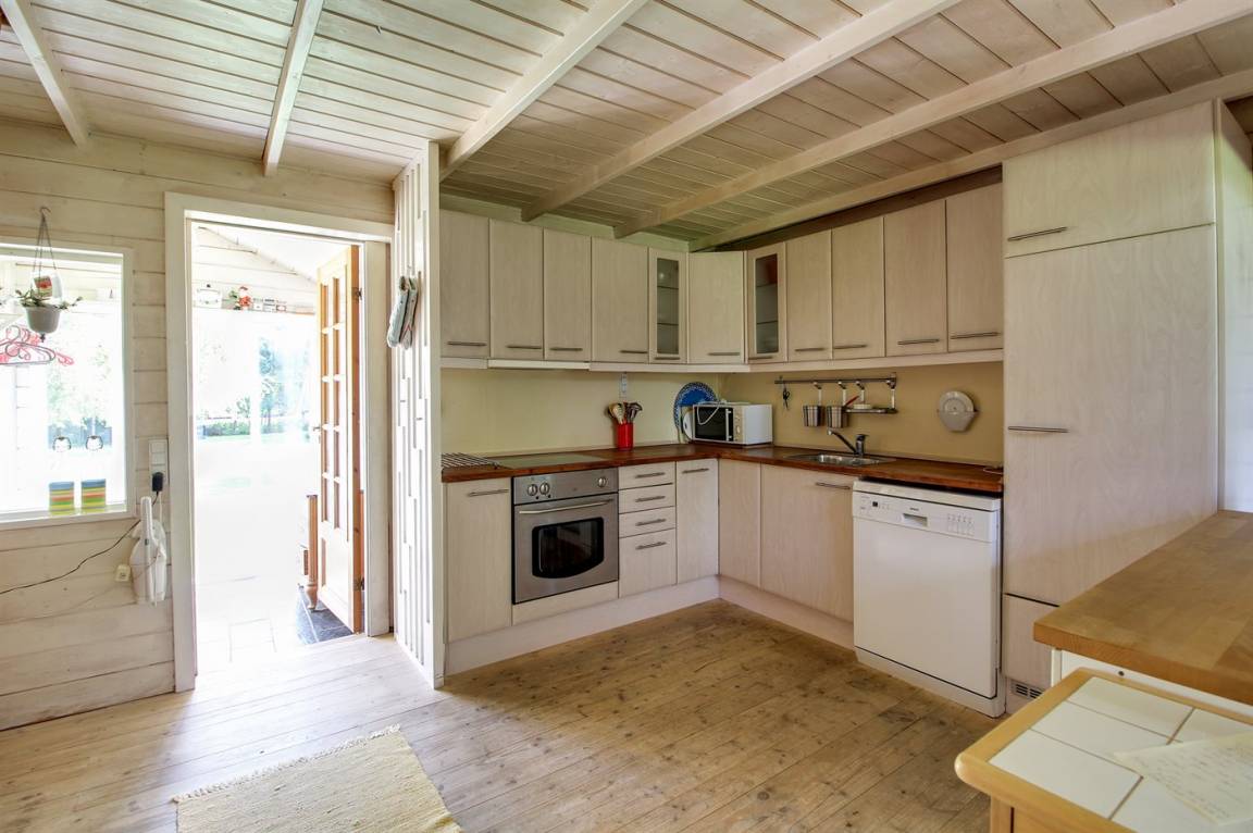 DraußenDie Ferienunterkunft liegt auf einem 1300 m² großen Naturgrundstück. Die Entfernung zum Meer beträgt 7000 m. Die nächste Einkaufsmöglichkeit liegt 4000 m entfernt. Es steht ein 40 m² Terrassenareal zur Verfügung. Parkplatz auf dem Grundstück.