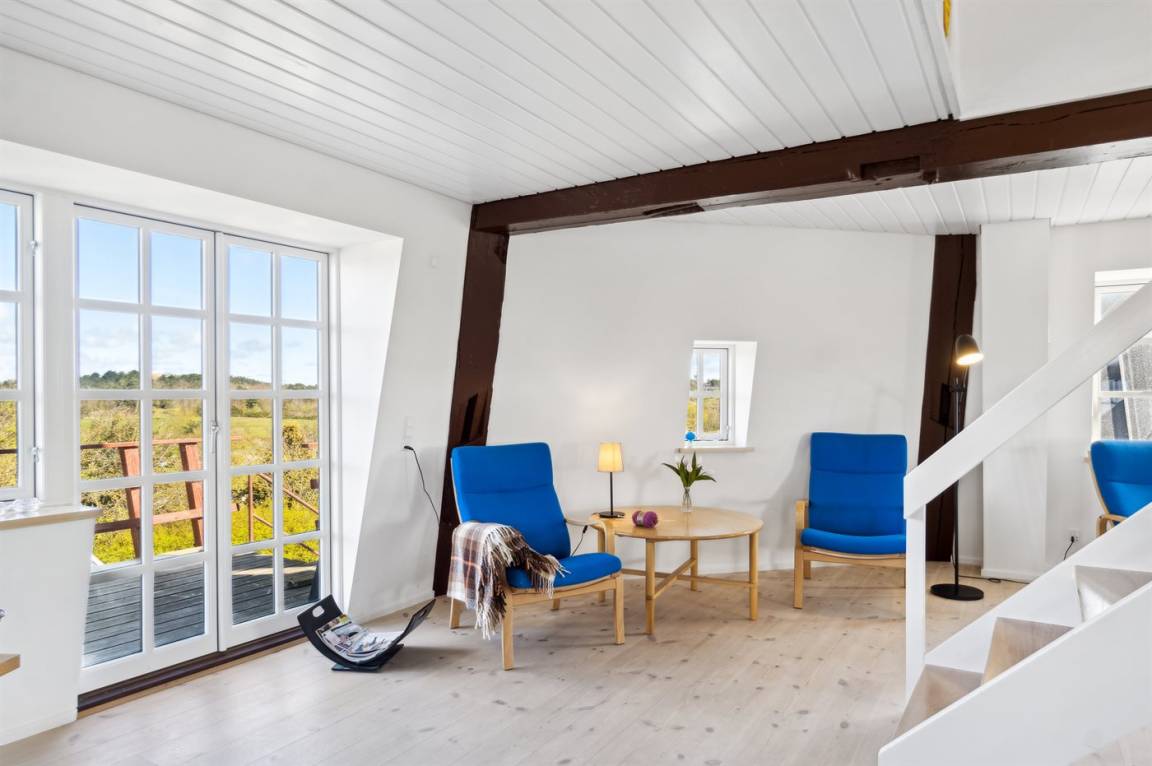 Hier hast du die Möglichkeit, deinen Urlaub in einem der historischen Wahrzeichen von Ebeltoft zu verbringen. Nämlich in der alten Mühle "Marie Mølle", mit einem fantastischen Blick über die Stadt, die Bucht und weit hinaus über das Wasser.
