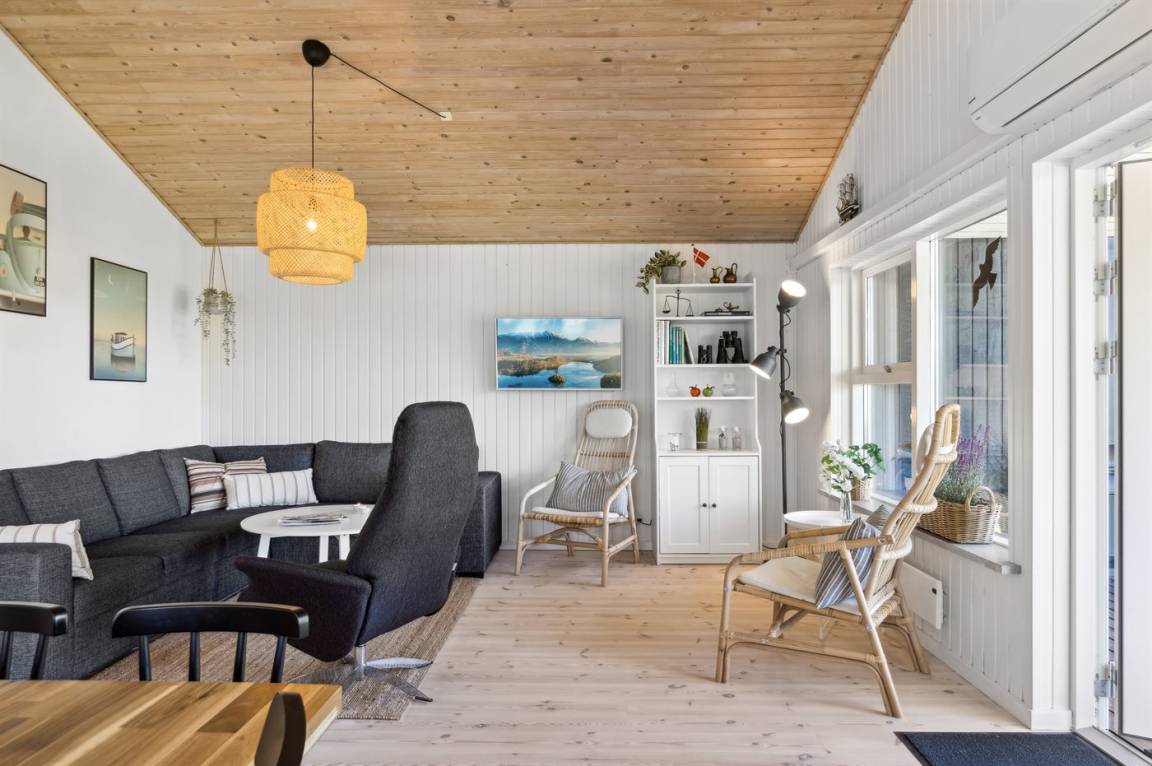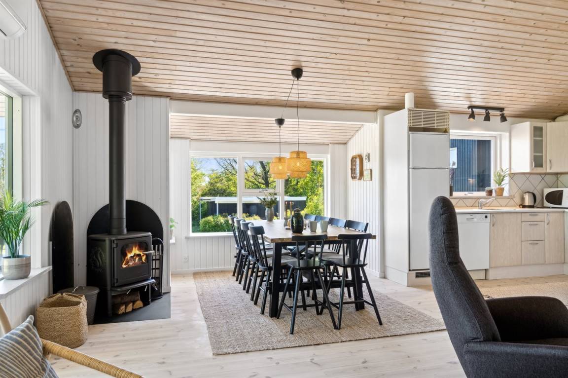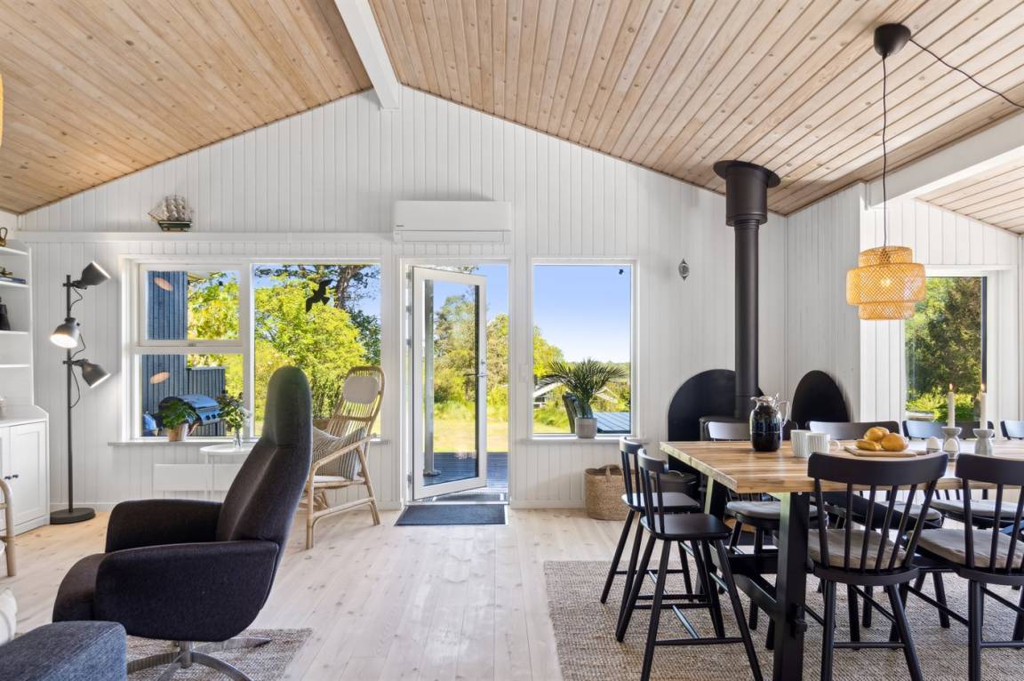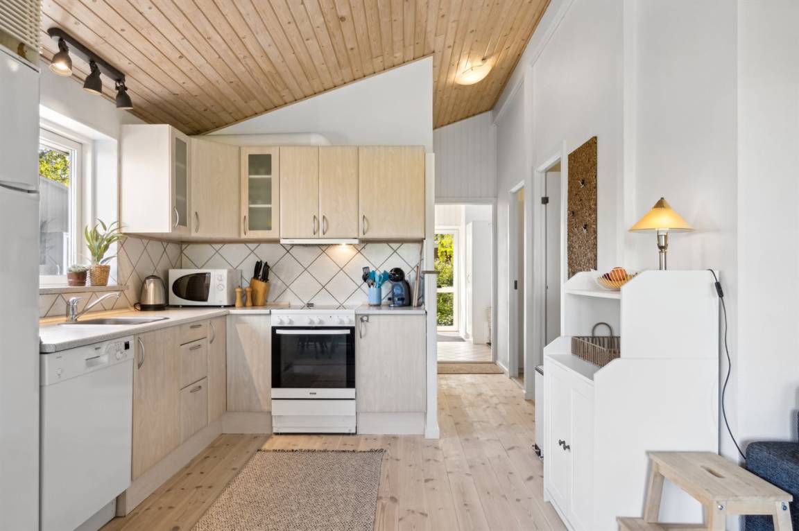 Das Herzstück des Hauses ist der offene Küchen-Wohnbereich, der sich zu einem hellen und einladenden Aufenthaltsraum vereint. Die Küche ist gut ausgestattet mit vier keramischen Kochfeldern, Heißluftofen, Mikrowelle, Geschirrspüler, Kühlschrank mit Gefrierfach, Wasserkocher sowie einer Dolce-Gusto-Kapselkaffeemaschine. Das Wohnzimmer ist mit bequemen Möbeln, einem gemütlichen Kaminofen sowie einem Smart-TV mit Chromecast und Zugang zu dänischen, deutschen, schwedischen und norwegischen Kanälen ausgestattet. Das gesamte Haus verfügt über WLAN.