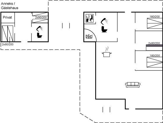 Die Einrichtung umfasst drei schöne Schlafzimmer im Haupthaus – zwei mit Doppelbetten und eines mit Etagenbett. Zudem gibt es ein geräumiges Badezimmer mit Fußbodenheizung, Sauna und Whirlpool. Im Anbau befinden sich zwei weitere Schlafzimmer mit jeweils zwei Einzelbetten sowie ein zusätzliches Badezimmer mit Fußbodenheizung, sodass sich Teile der Familie bei Bedarf zurückziehen können.