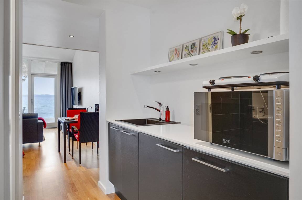 KücheDie Küche ist mit Kühlschrank ausgestattet. Außerdem gibt es 2 elektrische Kochplatten, Minibackofen, Mikrowelle.