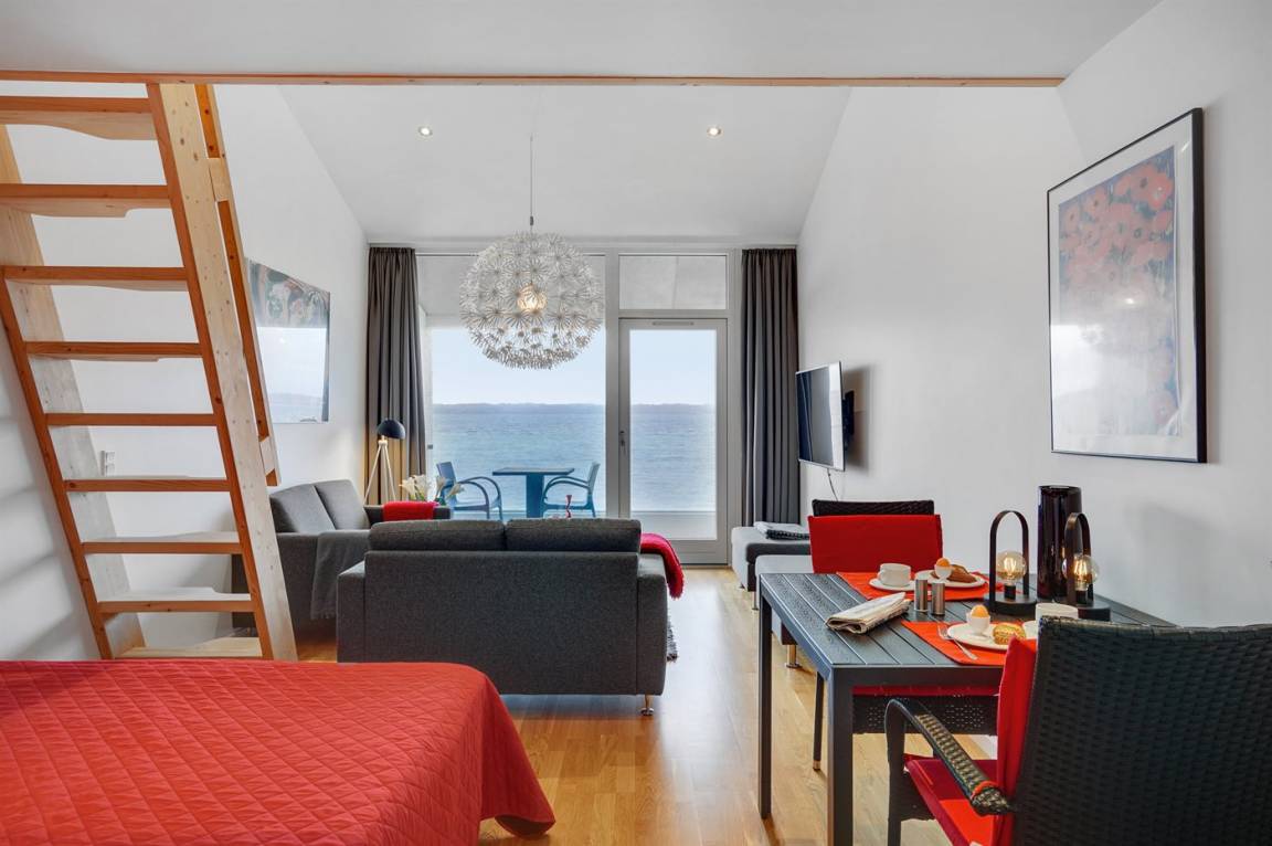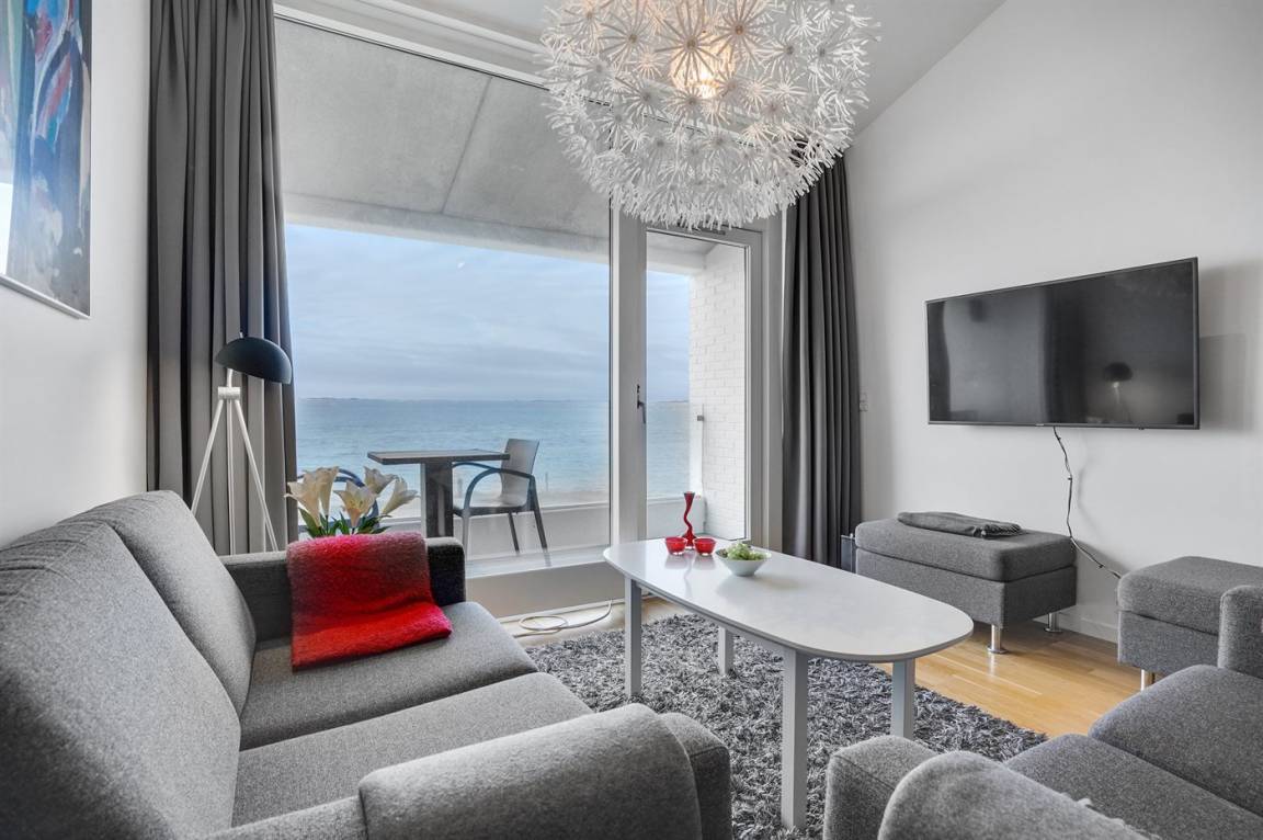 Direkt am Wasser und mit fantastischem Ausblick über Ebeltoft Vig liegt diese Ferienwohnung im Obergeschoss. Von der Terrasse aus haben Sie Ausblick auf die schöne Stadt Ebeltoft und auf die Fregatte Jütland.