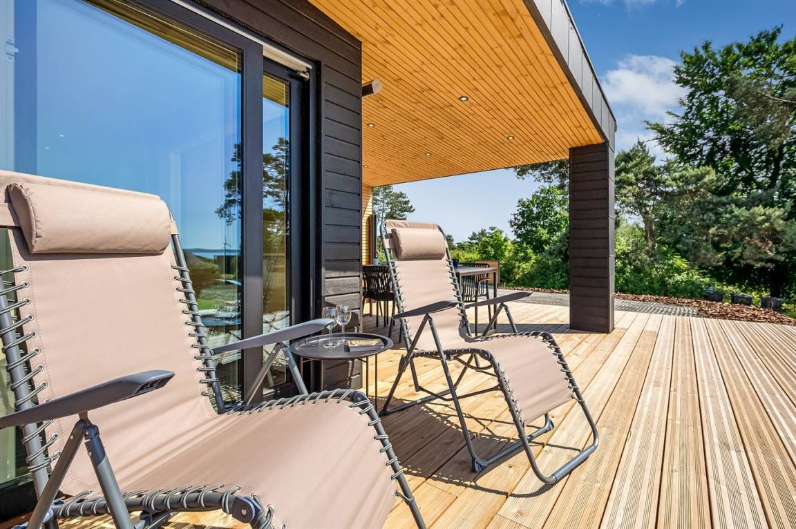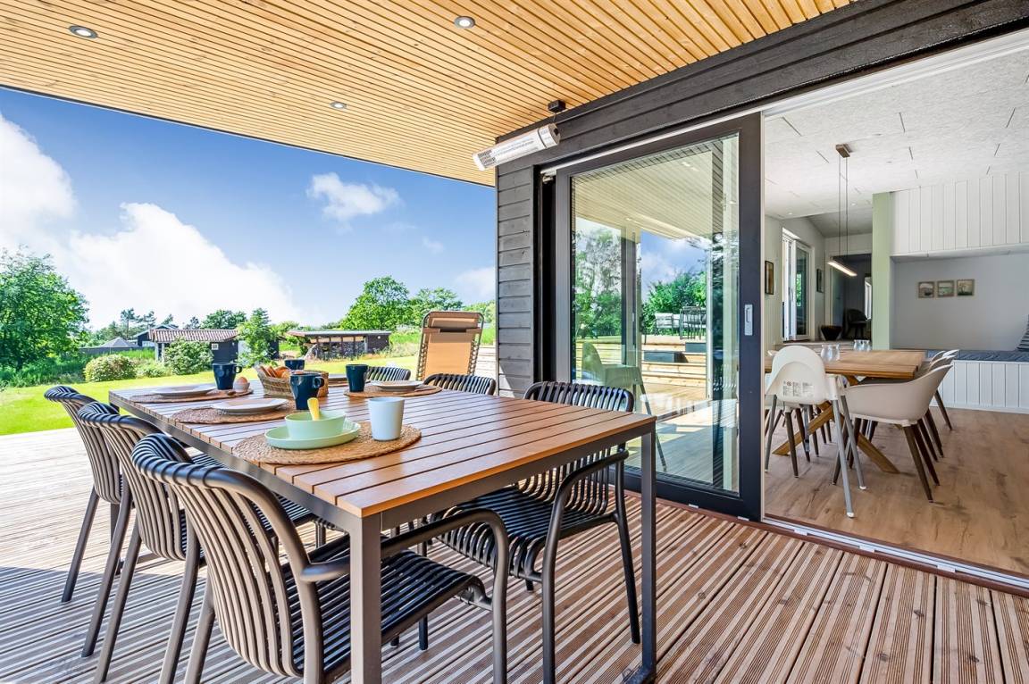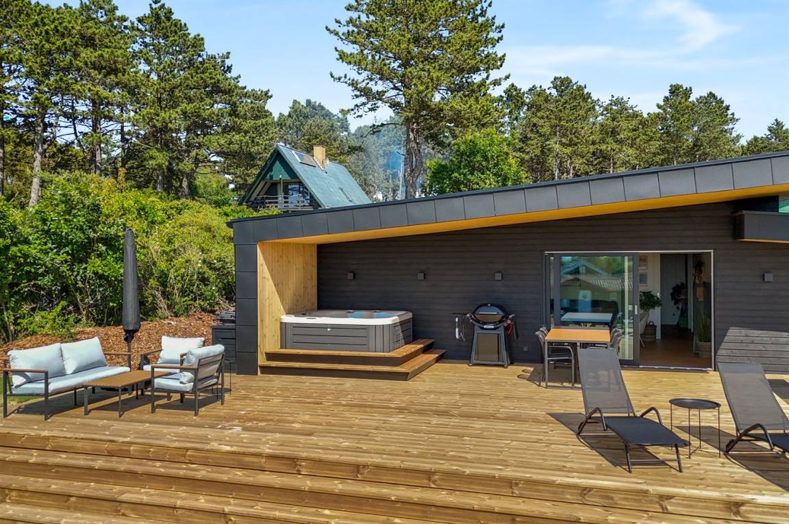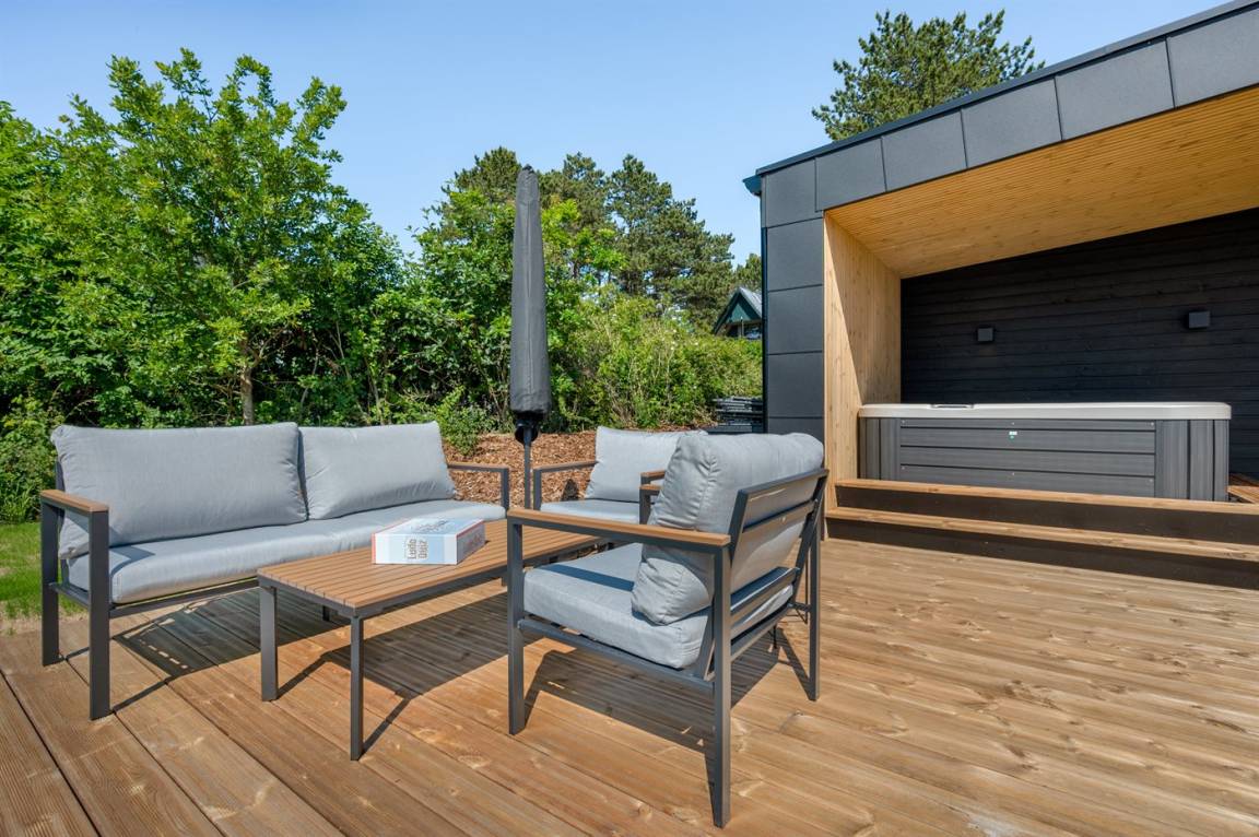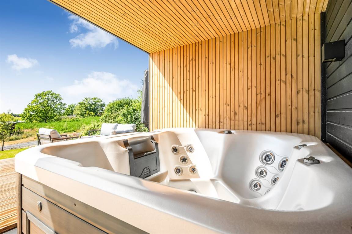 Die Aussicht ist von mehreren Stellen im Haus einfach atemberaubend – ganz besonders aber von der fantastischen, teilweise überdachten Terrasse. Auf der Terrasse findest du auch einen großen Außen-Whirlpool mit Platz für sechs Personen – ein besonderes Highlight ist, dass der Whirlpool sich im überdachten Terrassenbereich befindet, sodass du selbst bei schlechtem Wetter im warmen Wasser sitzen und die schöne Umgebung genießen kannst.