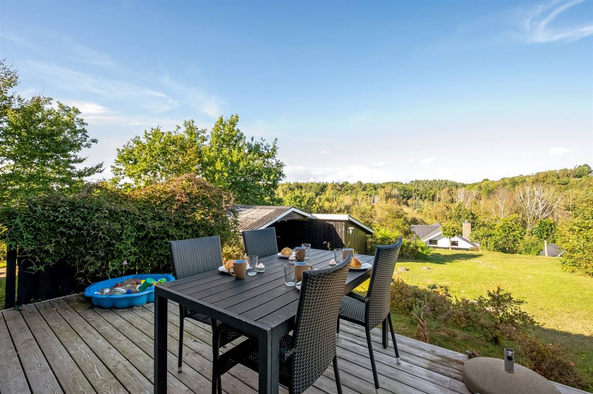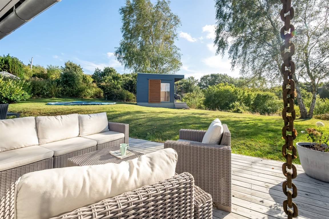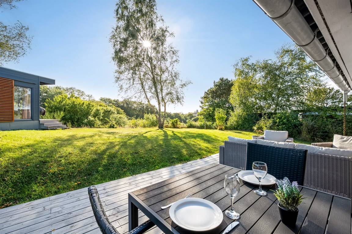Das Ferienhaus liegt ungestört auf einem großen, wunderschönen Naturgrundstück, von dem aus du einen fantastischen Ausblick auf die umliegende Landschaft hast. An mehreren Seiten des Hauses gibt es gute Terrassenbereiche, sodass du immer ein sonniges Plätzchen oder eine windgeschützte Ecke finden kannst – auch wenn das Wetter sich mal nicht von seiner besten Seite zeigt. Eine der Terrassen ist sogar überdacht.