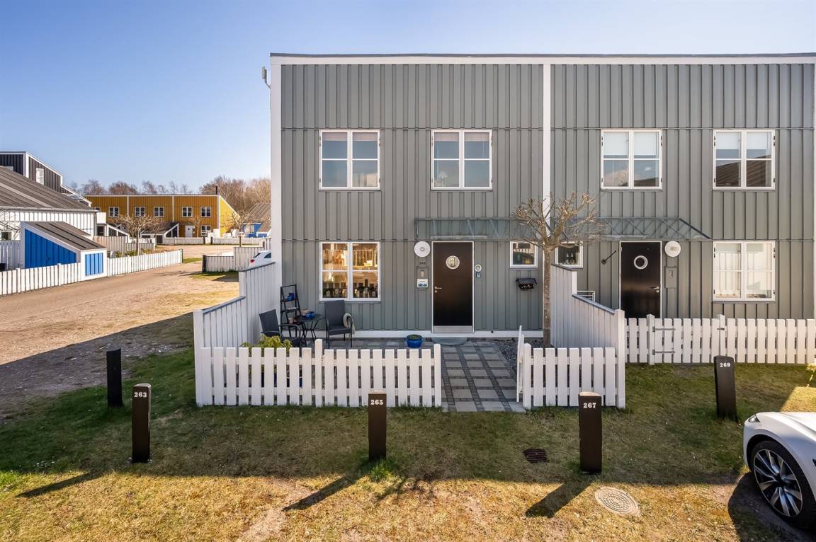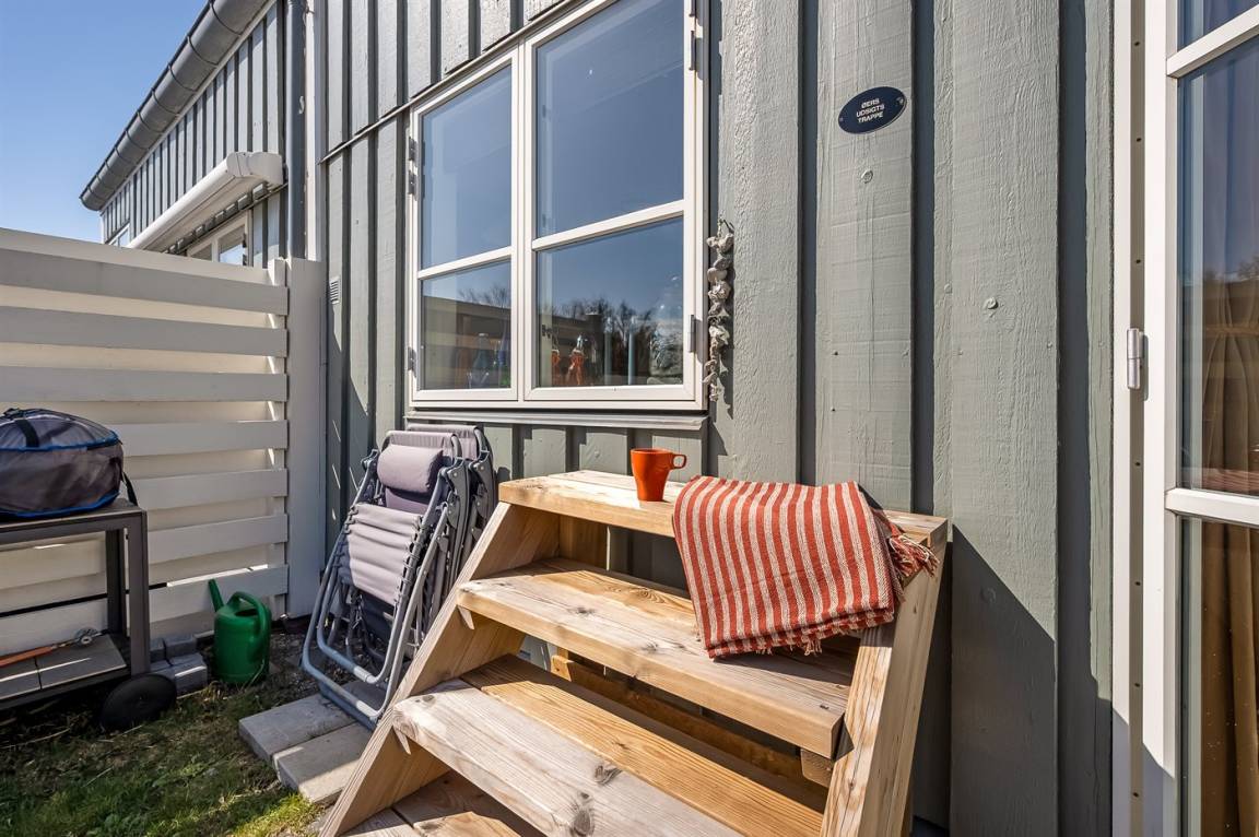 DraußenDie Ferienunterkunft liegt auf einem 155 m² großen Das Grundstück ist eingezäunt. Die Entfernung zum Meer beträgt 50 m. Die nächste Einkaufsmöglichkeit liegt 300 m entfernt. Es steht ein offenes Terrassenareal zur Verfügung. Es steht ein Grill zur Verfügung. Parkplatz auf dem Grundstück.