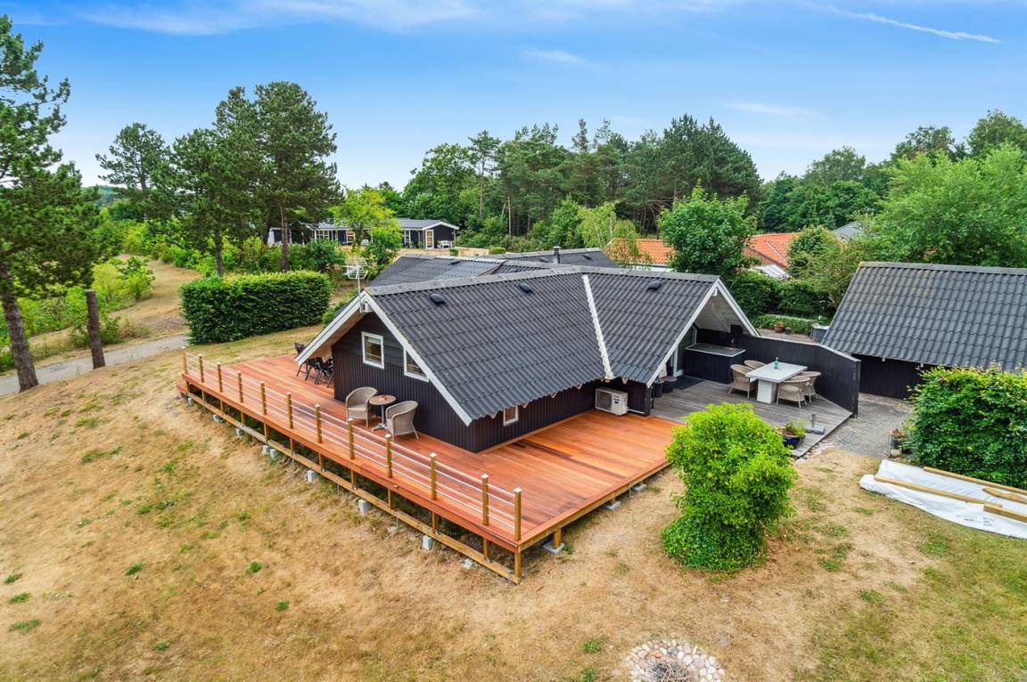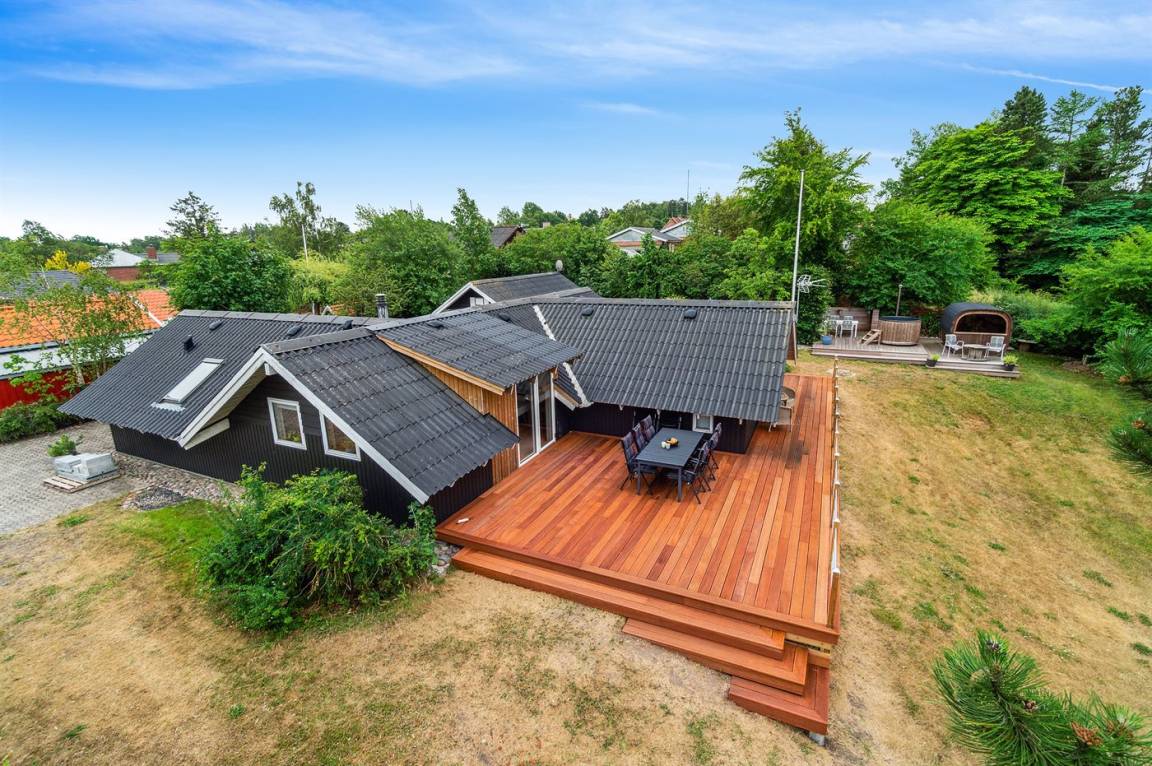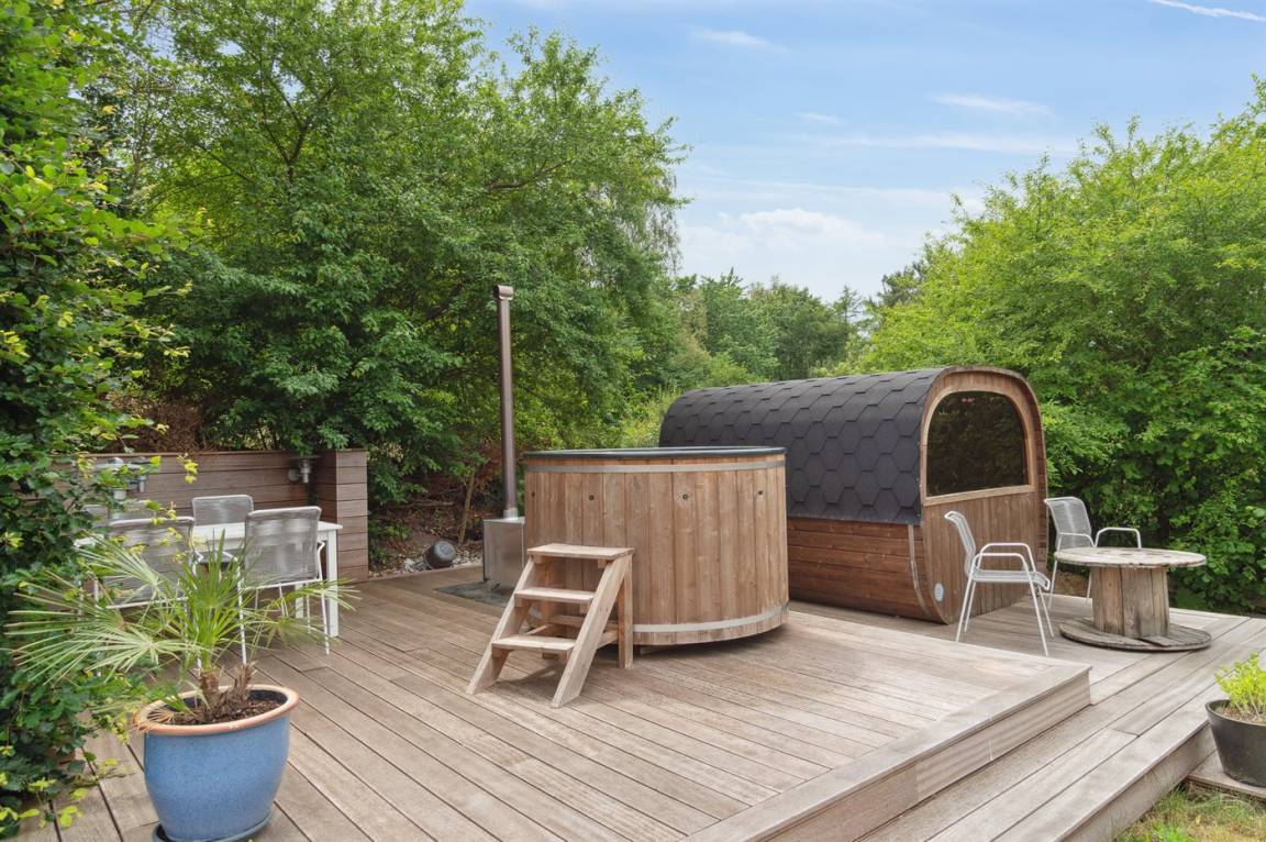 Ein schönes und geräumiges Ferienhaus, mit herrlichen Terrassen und naturschöner Lage. Das Ferienhaus liegt auf einem gepflegten und leicht schrägenden Grundstück, und es ist nicht weit zum Nationalpark Mols Bjerge und der gemütlichen Stadt Ebeltoft. Auf der einen Terrasse finden Sie einen 5-Pers. Hot Tub und eine Außensauna, die das ganze Jahr hindurch benutzt werden können.