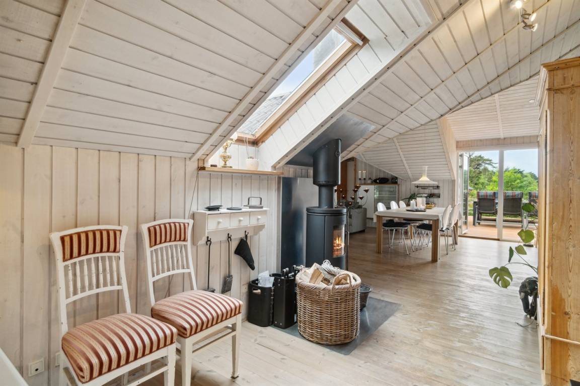 EinrichtungDas Ferienhaus eignet sich für 6 Personen sowie 1 Kleinkind bis zu 3 Jahren. Die Ferienunterkunft hat eine Wohnfläche von 125 m² und wurde 1989 gebaut. 2007 wurde die Ferienunterkunft teilweise renoviert. Haustiere dürfen nicht mitgebracht werden. Die Ferienunterkunft ist mit energiesparender Wärmepumpe ausgestattet. Die Ferienunterkunft ist mit Waschmaschine ausgestattet. Ein zusätzlicher Kühlschrank mit Gefrierschrank befindet sich im Carport. Es gibt außerdem einen Kaminofen. Für die jüngsten Feriengäste ist 1 Kinderhochstuhl vorhanden.