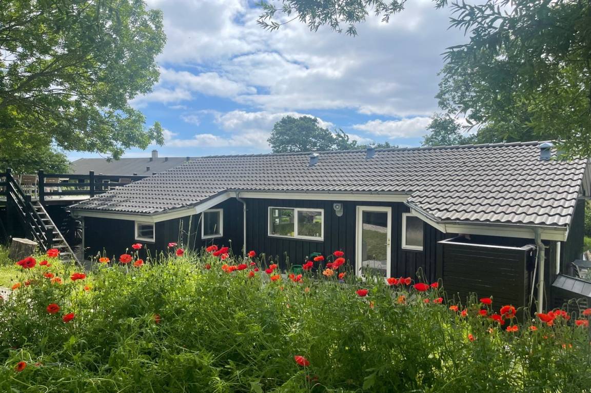 In einem ruhigen und naturschönen Gebiet dicht an einem kinderfreundlichen Badestrand liegt dieses gemütliche Ferienhaus in einer Sachgasse mit Aussicht über das Wasser vom Grundstück aus.