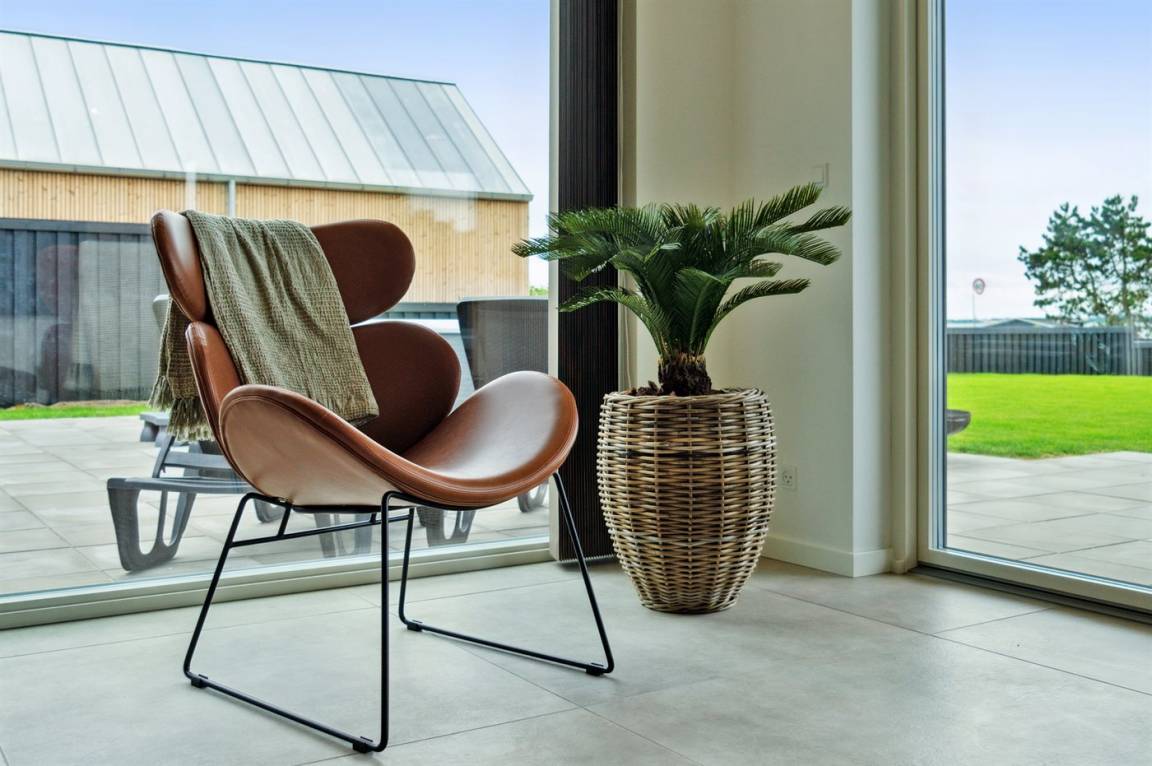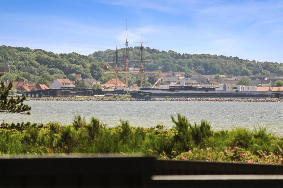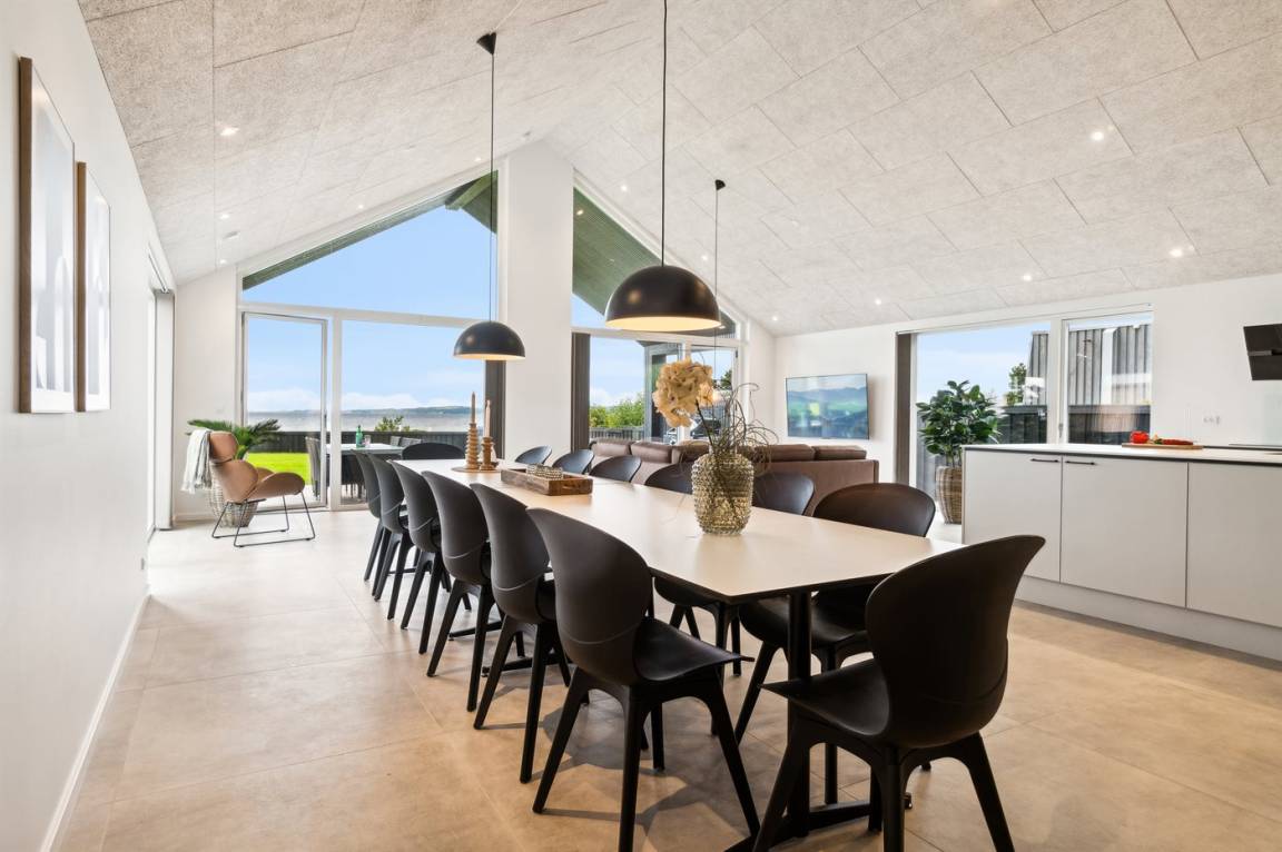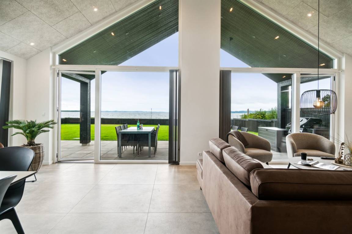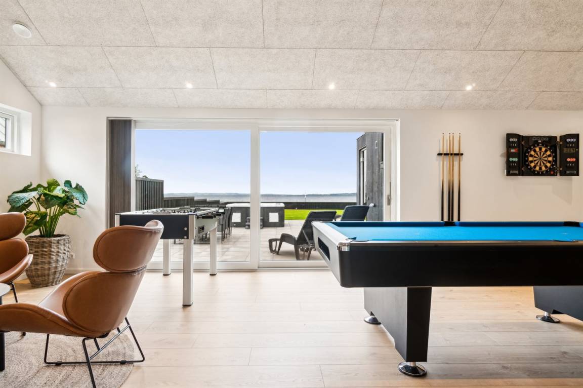 Die große Terrasse des Ferienhauses bietet gute Möglichkeiten für Schutz und Schatten. Auf der Terrasse findest du auch einen großen Whirlpool im Freien, in dem man sich in den sprudelnden Massageblasen zurücklehnen und dabei auf Ebeltoft Vig und das schöne Wasser blicken kann.