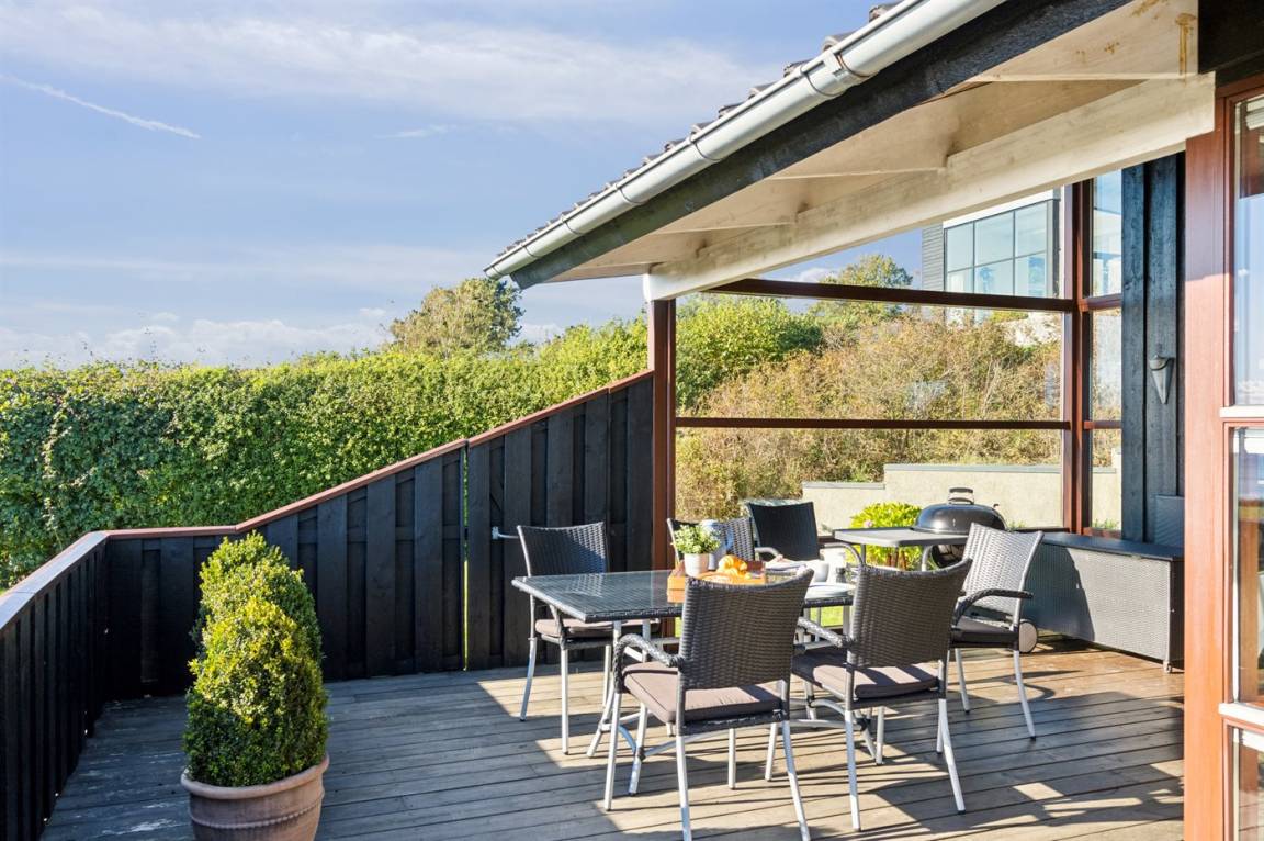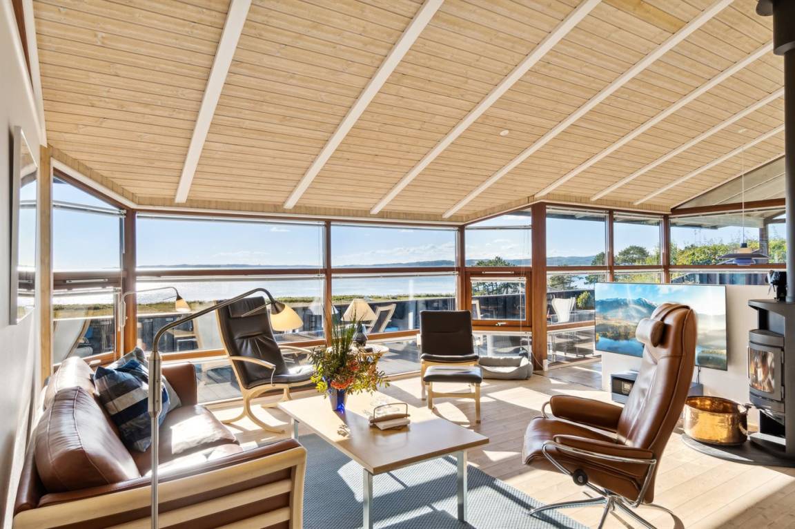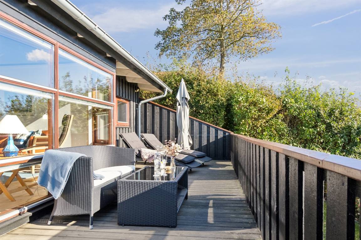Ein herrliches Ferienhaus mit Panoramablick auf das Wasser in der Ebeltoft-Bucht. Das Haus stammt aus dem Jahr 2008, ist aus hochwertigen Materialien gebaut und präsentiert sich schön und gepflegt.