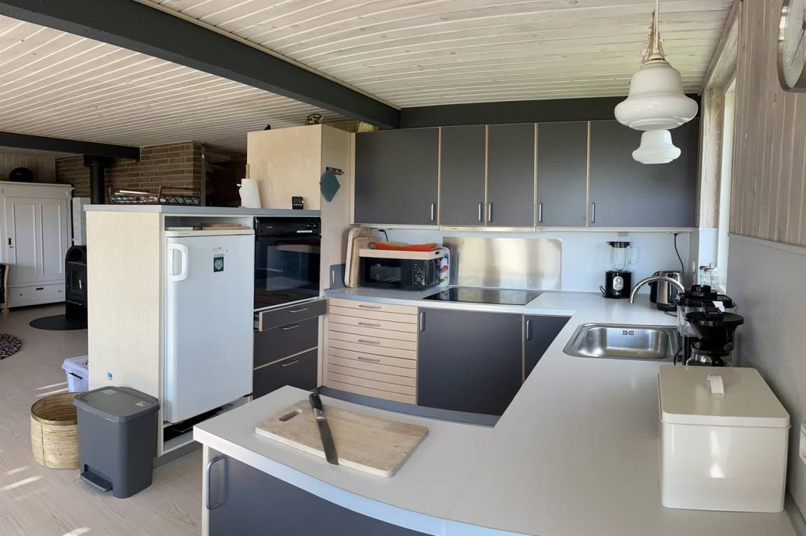Nehmt eure Familie mit und reist nach Djursland, wo ihr in der Nähe von Lyngsbæk Strand dieses herrlichen Ferienhauses findet. Das Haus erstreckt sich über zwei Etagen und bietet Platz für eine etwas größere Familie. Die Einrichtung ist wirklich schön mit freigelegtem Mauerwerk und warmen Holzpaneelen, die zusammen mit den modernen Annehmlichkeiten eine Atmosphäre schaffen, in der ihr euch entspannen könnt. Das Wohnzimmer ist schön hell und bietet durch die großen Fensterfronten einen guten Ausblick. Um es besonders gemütlich zu machen, könnt ihr an kühleren Tagen den Kaminofen anzünden und bei einem Glas Wein und einem guten Buch seine Wärme und das Knistern genießen.