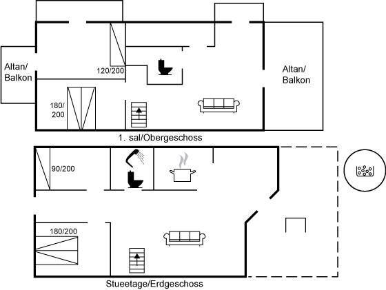 DraußenDie Ferienunterkunft liegt auf einem 1000 m² großen Naturgrundstück. Die Entfernung zum Meer beträgt 450 m. Die nächste Einkaufsmöglichkeit liegt 850 m entfernt. Es steht ein offenes Terrassenareal zur Verfügung. Außerdem gibt es überdachte Terrasse.Balkon im Obergeschoss.Lagerfeuerstelle. Es steht ein Grill zur Verfügung. Es ist ein Ladestecker für Elektroautos installiert. CEE Stecker. Parkplatz auf dem Grundstück.