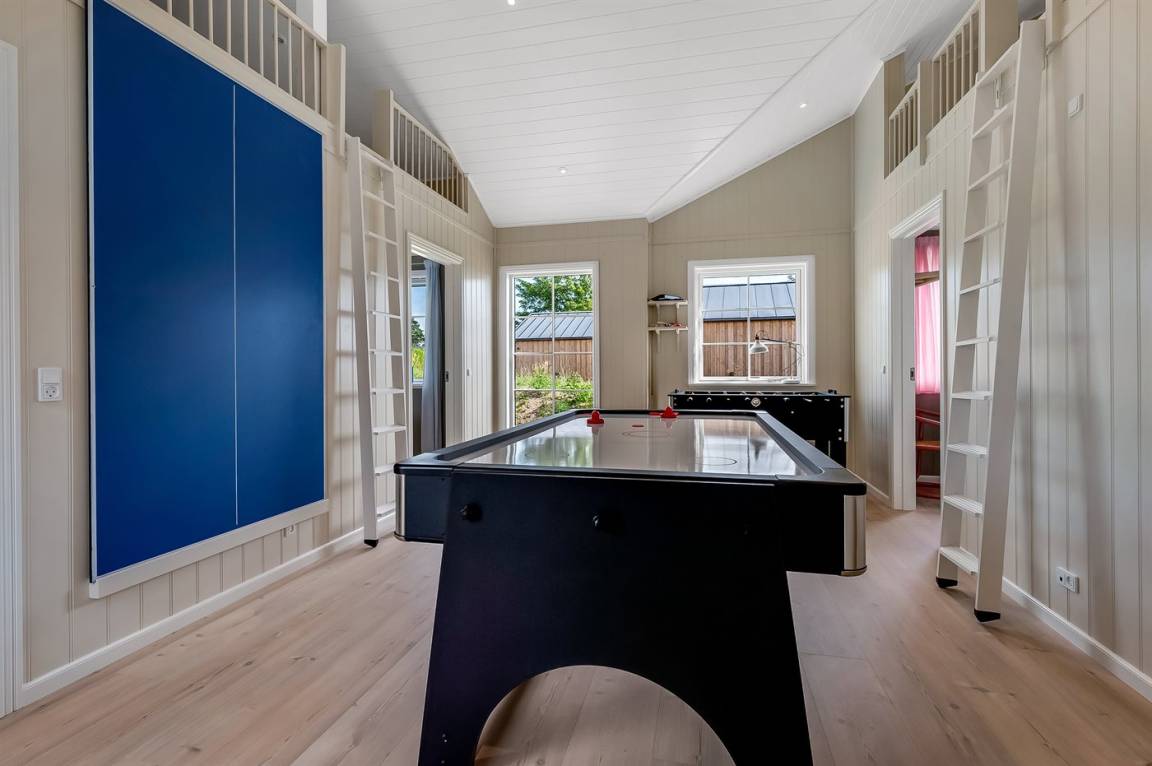 Das Haus mit 6 Schlafzimmern und 3 offenen Obergeschossen bietet Platz für bis zu 18 Gäste und lädt die ganze Familie zu Unterhaltung und Entspannung ein. Hier gibt es sowohl einen Aktivitätsraum als auch eine Außensauna und einen herrlichen Wellnessbereich mit Außenpool und Whirlpool.