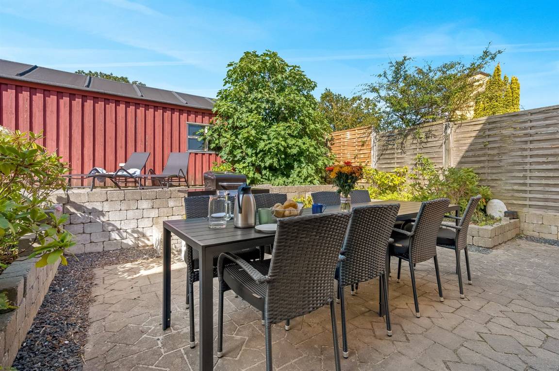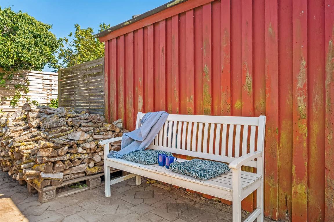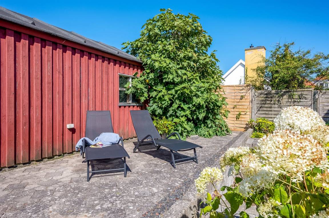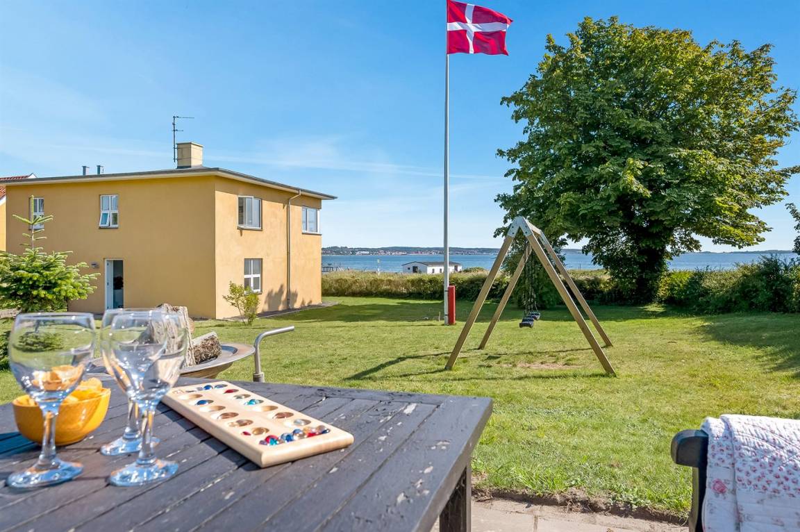 DraußenDie Ferienunterkunft liegt auf einem 1152 m² großen Gartengrundstück. Die Entfernung zum Meer beträgt 25 m. Es gibt einen Badesteg in der Nähe. Die nächste Einkaufsmöglichkeit liegt 1000 m entfernt. Es steht ein offenes Terrassenareal zur Verfügung. Schaukel. Es steht ein Grill zur Verfügung. Parkplatz auf dem Grundstück.