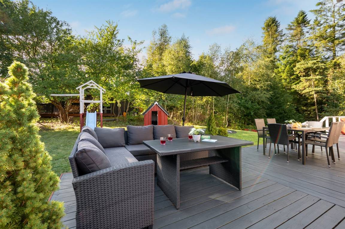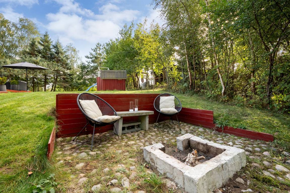 DraußenDie Ferienunterkunft liegt auf einem 1200 m² großen Naturgrundstück. Die Entfernung zum Meer beträgt 925 m. Die Entfernung zu einem See beträgt 20 m. Die nächste Einkaufsmöglichkeit liegt 2000 m entfernt. Es steht ein offenes Terrassenareal zur Verfügung. Außerdem gibt es überdachte Terrasse. Geräteraum. Schaukel. Sandkasten. Kinderspielhaus. Trampolin. Spielturm. Rutsche.Lagerfeuerstelle. Windschutzhütte. Es steht ein Grill zur Verfügung. Parkplatz auf dem Grundstück.