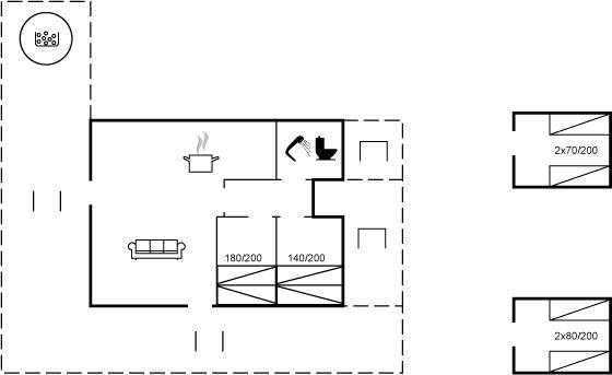 Das Ferienhaus eignet sich für 8 Personen sowie 1 Kleinkind bis zu 3 Jahren. Die Ferienunterkunft hat eine Wohnfläche von 64 m² und wurde 1984 gebaut. 2018 wurde die Ferienunterkunft renoviert. Haustiere dürfen nicht mitgebracht werden. Die Ferienunterkunft ist mit Waschmaschine ausgestattet. Tiefkühlmöglichkeit mit 80 Liter Nutzinhalt. Es gibt außerdem einen Kaminofen. Für die jüngsten Feriengäste ist 1 Kinderhochstuhl vorhanden.