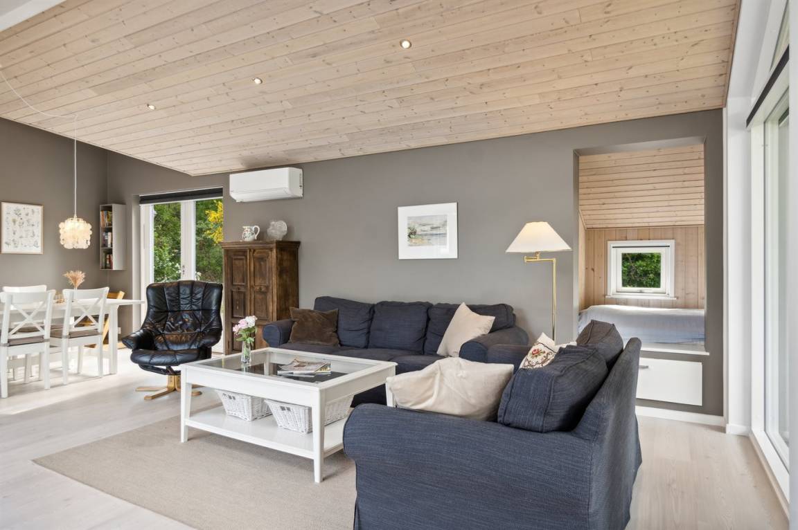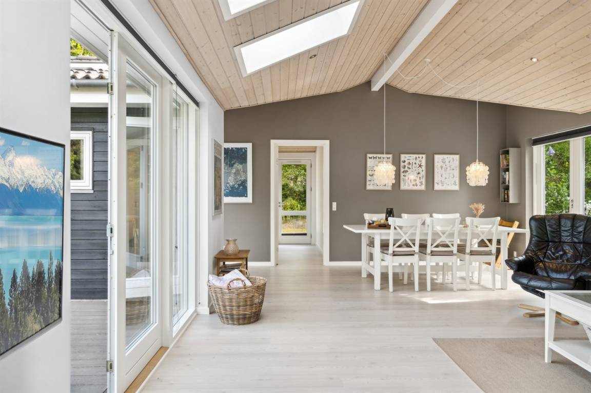 Dieses besonders schöne und geräumige Ferienhaus liegt auf einem ungestörten Grundstück in einer Sackgasse. Der Mittelpunkt des Hauses sind das große Wohnzimmer sowie die Küche – von hier aus gibt es einen schönen Ausblick auf das Grundstück. Übrigens; 1 der insgesamt 6 Schlafplätze befindet sich in einem Alkoven im Wohnzimmer.