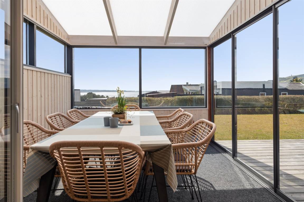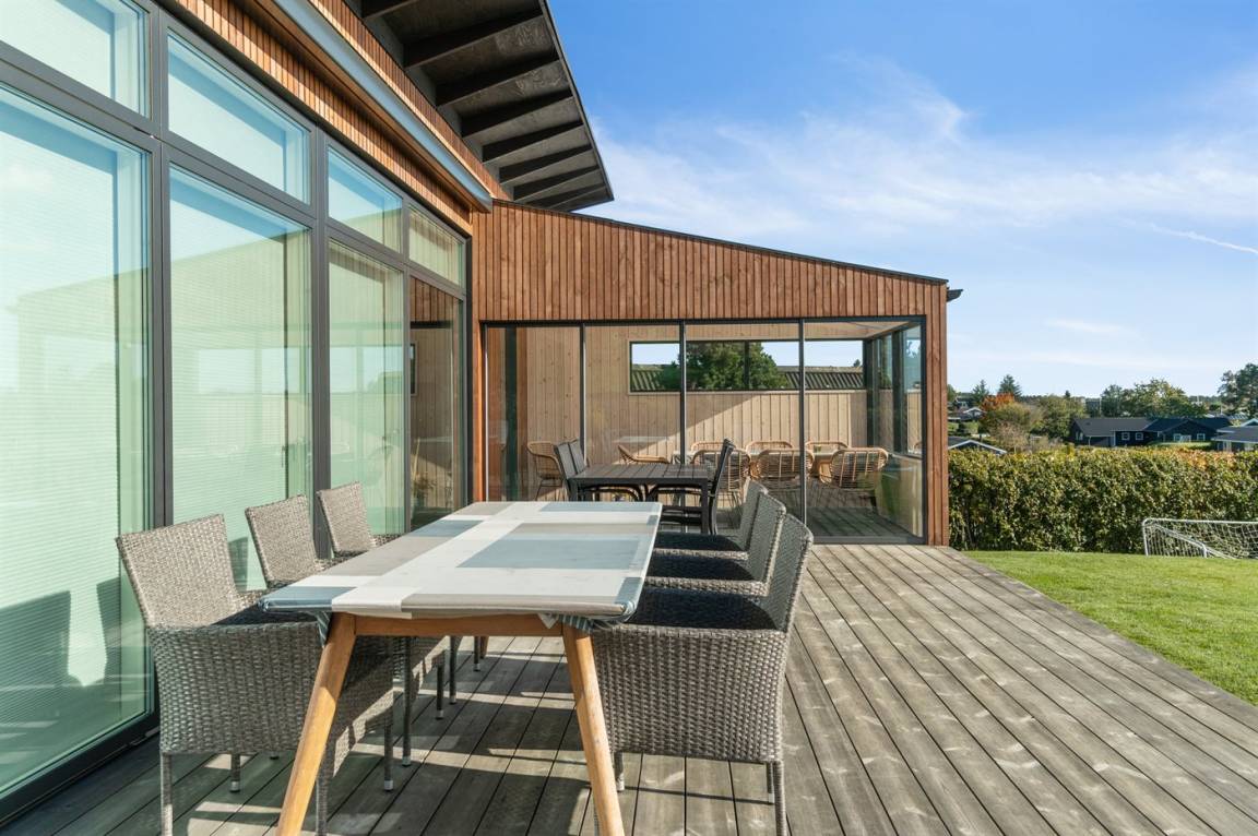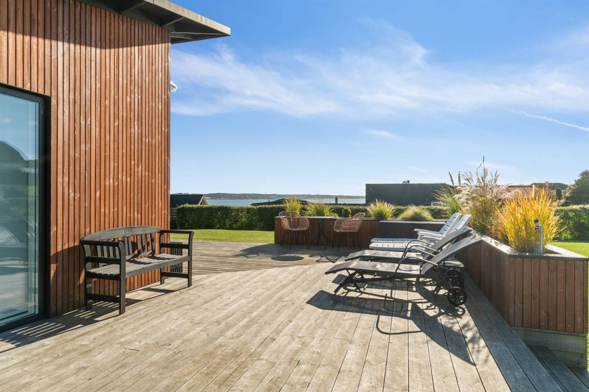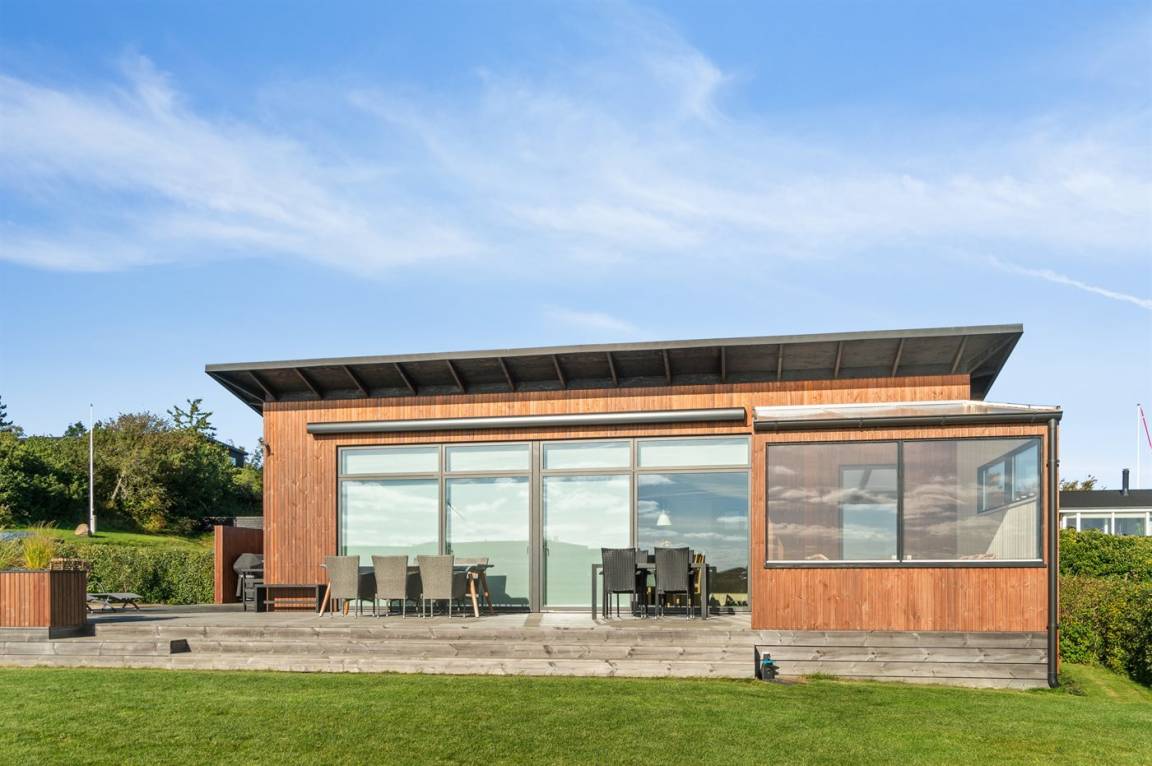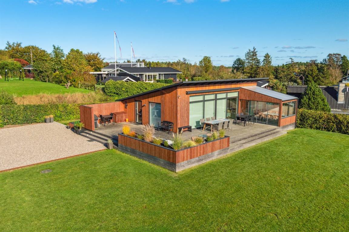 Ein traumhaft schönes Sommerhaus, 2021 gebaut, mit einer phantastischen Lage und einem tollen Blick auf das Wasser - sowohl vom Haus als auch von der großen, schönen Terrasse aus. In Verlängerung der Küche liegt ein schöner Wintergarten, der in dem Maße dazu beiträgt den Sommer zu verlängern und das Gefühl sich im Freien aufzuhalten, da die gesamte Schiebetür aus Glas geöffnet werden kann.