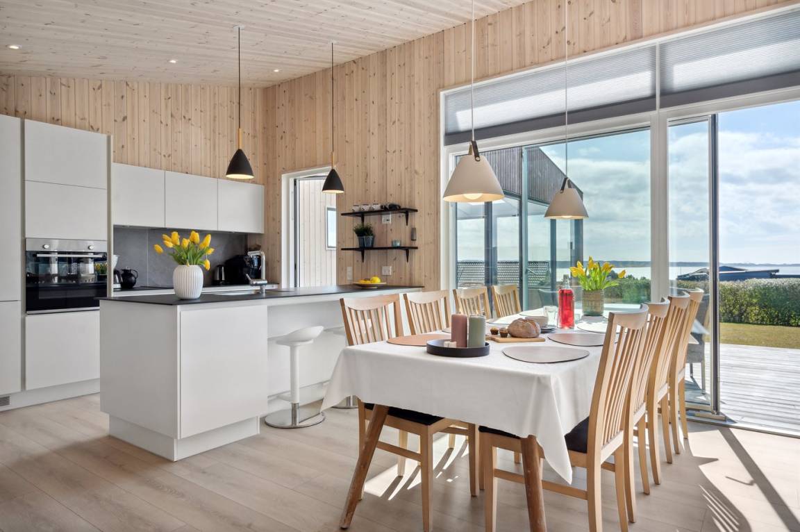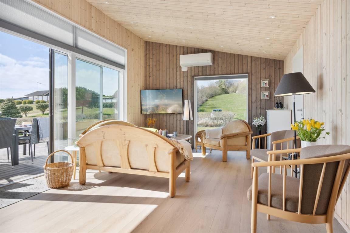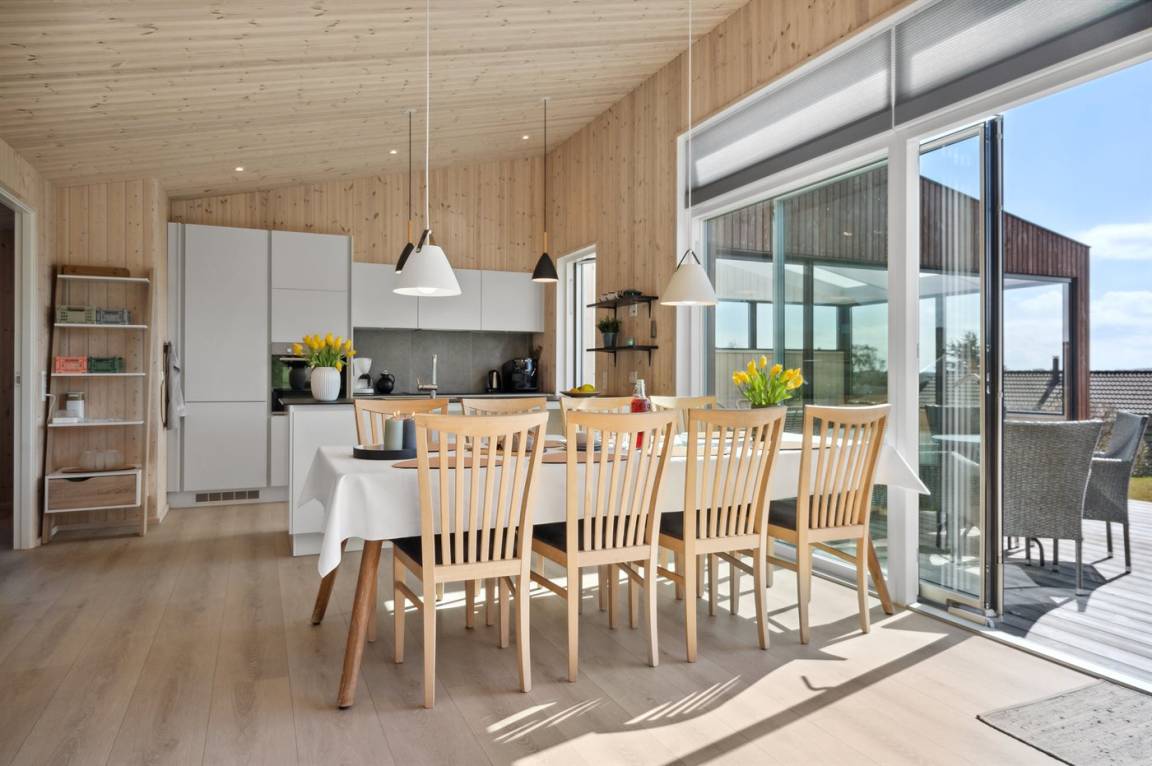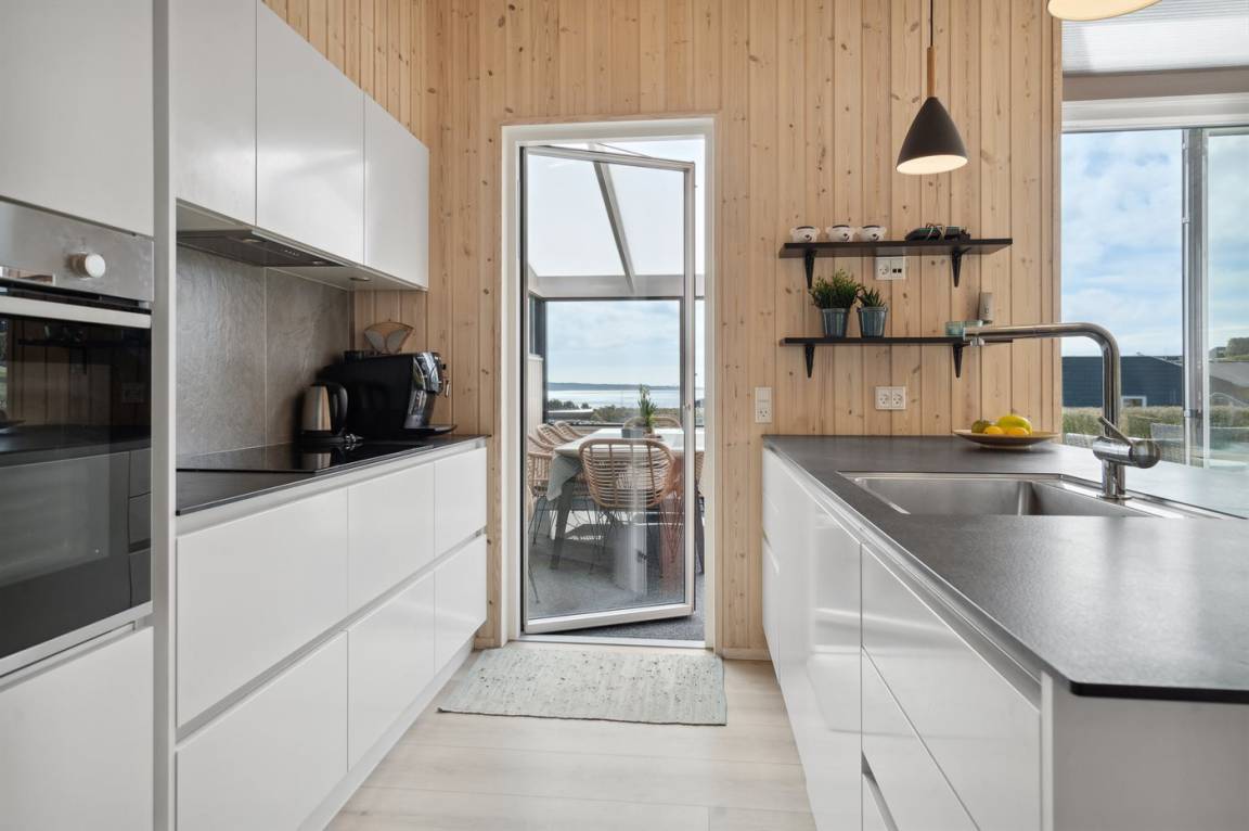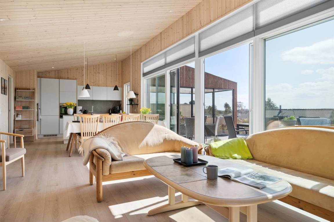 Ein traumhaft schönes Sommerhaus, 2021 gebaut, mit einer phantastischen Lage und einem tollen Blick auf das Wasser - sowohl vom Haus als auch von der großen, schönen Terrasse aus. In Verlängerung der Küche liegt ein schöner Wintergarten, der in dem Maße dazu beiträgt den Sommer zu verlängern und das Gefühl sich im Freien aufzuhalten, da die gesamte Schiebetür aus Glas geöffnet werden kann.