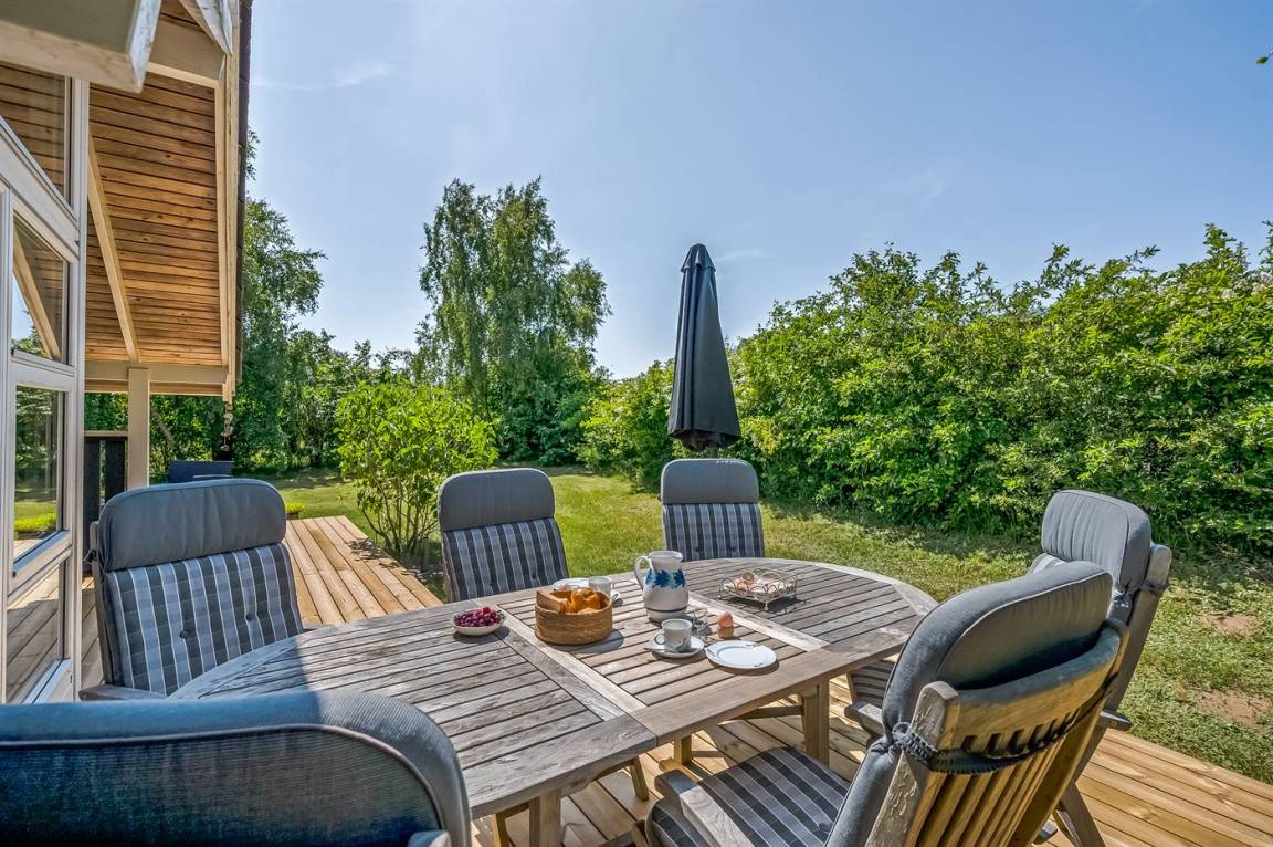 DraußenDie Ferienunterkunft liegt auf einem 1500 m² großen Naturgrundstück. Die Entfernung zum Meer beträgt 1250 m. Die nächste Einkaufsmöglichkeit liegt 1500 m entfernt. Es steht ein offenes Terrassenareal zur Verfügung. Außerdem gibt es überdachte Terrasse. Zutritt zu einem Wintergarten. Geräteraum. Es steht ein Grill zur Verfügung. Es steht ein Carport zur Verfügung. Parkplatz auf dem Grundstück.