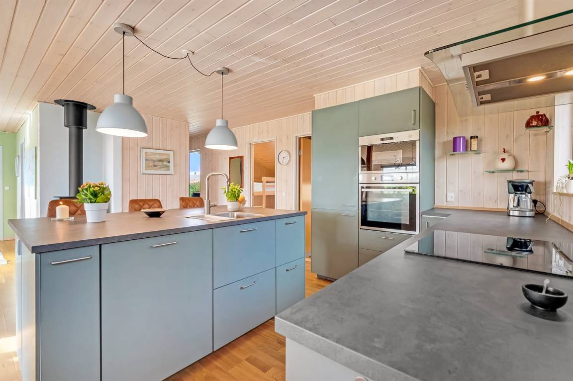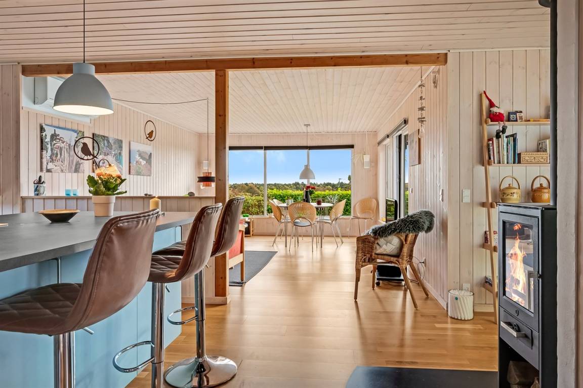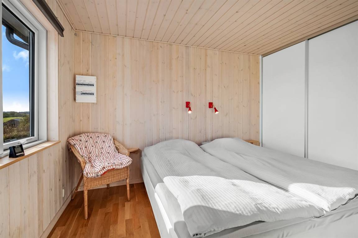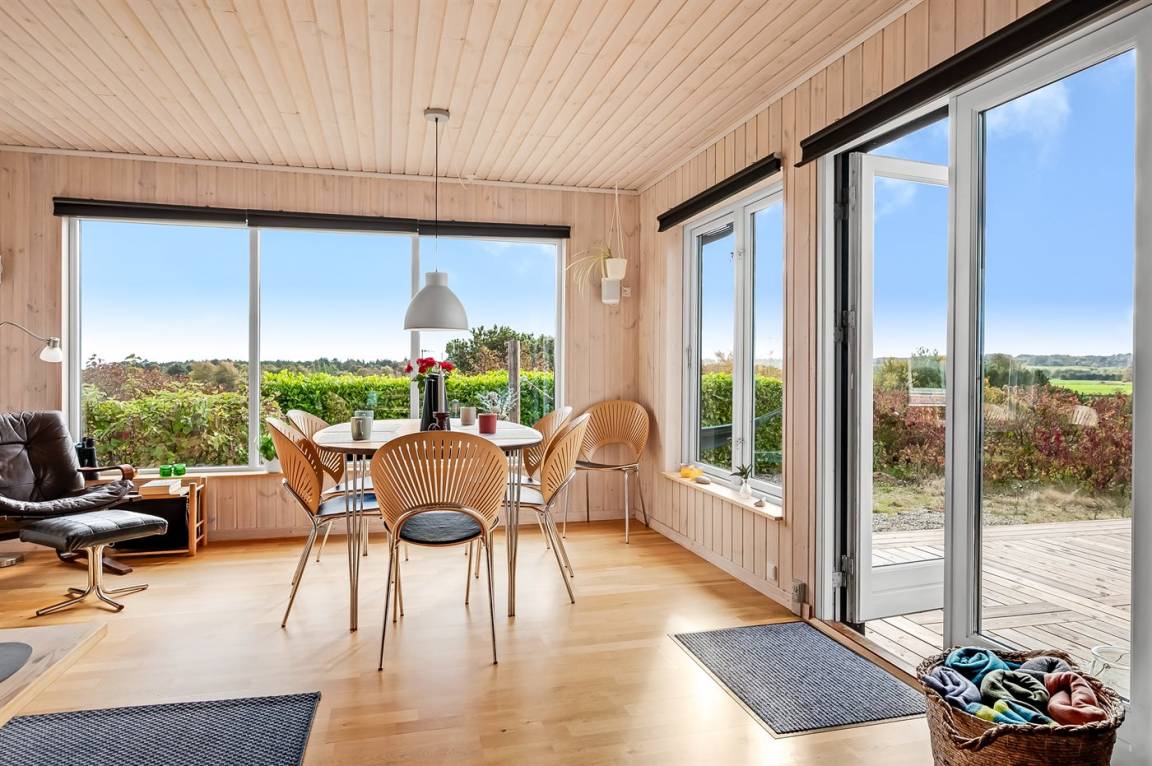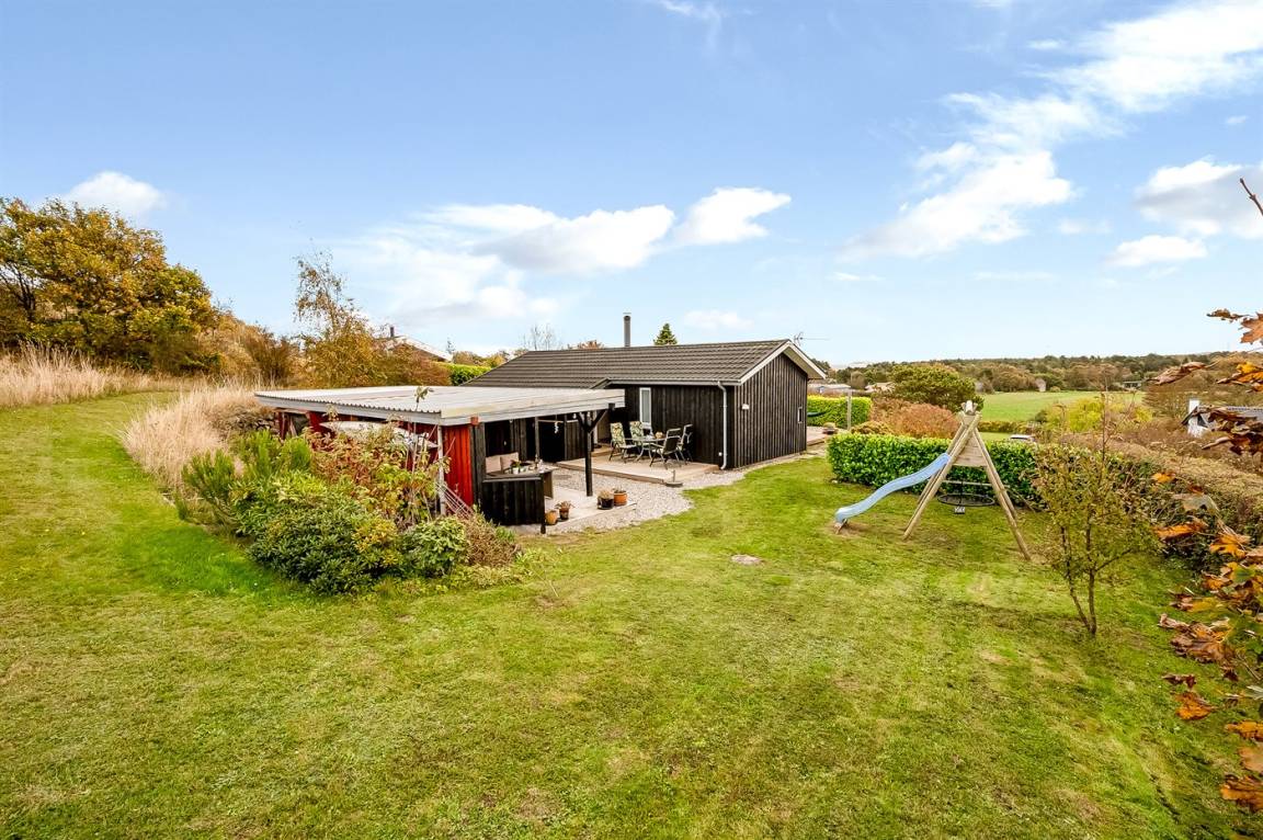 Das Ferienhaus liegt ungestört auf dem großen Grundstück, von dem du eine fantastische Aussicht über die Landschaft hast – fast wie ein Panoramablick, besonders vom oberen Teil des leicht abfallenden Geländes. Zum Wasser und zum Badestrand sind es nur ca. 600 Meter, wo du viele schöne Stunden im Sand verbringen kannst.