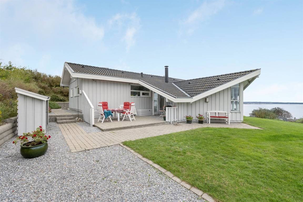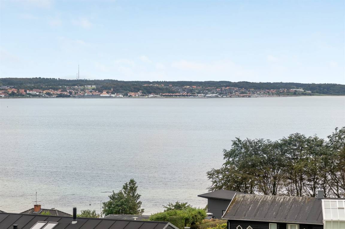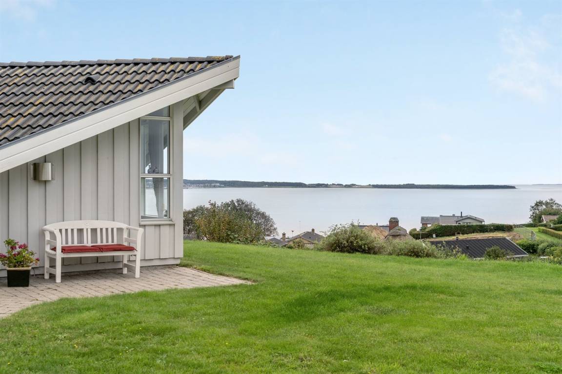 Ein phantastisch gelegenes Ferienhaus mit außergewöhnlich schöner Panoramaaussicht über das Wasser und Ebeltoft – eine schönere Aussicht ist schwer zu finden. Das Ferienhaus liegt außerdem so hoch im Gelände, daß es verhältnismäßig ungestört liegt. Das Haus ist von Terrassen umgeben und daher können Sie ie Aussicht von mehreren Seiten aus genießen. Ein schönes und gepflegtes Ferienhaus mit viel Platz.
