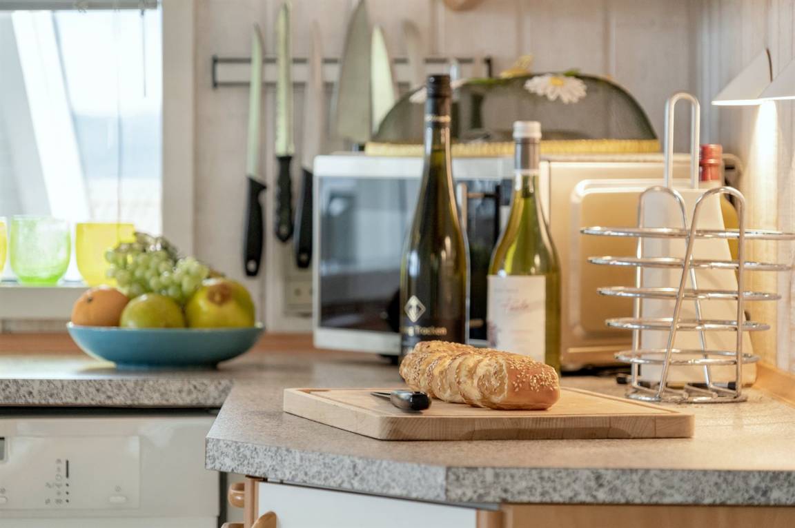 KücheDie Küche ist mit Kühlschrank ausgestattet. Außerdem gibt es 4 Keramik-Kochfelder, Umluftofen, Mikrowelle sowie Geschirrspüler. Im Schlafzimmer mit Etagenbett steht ein zusätzlicher Kühlschrank.