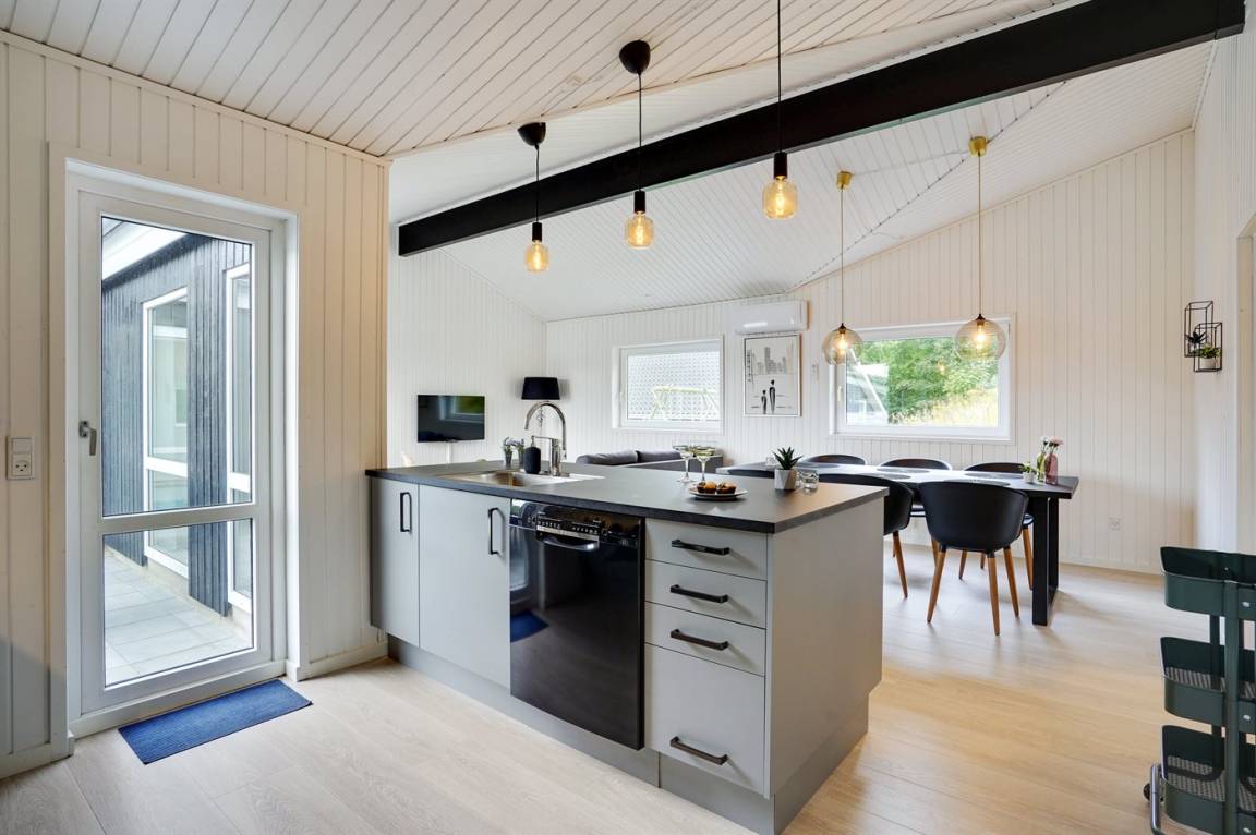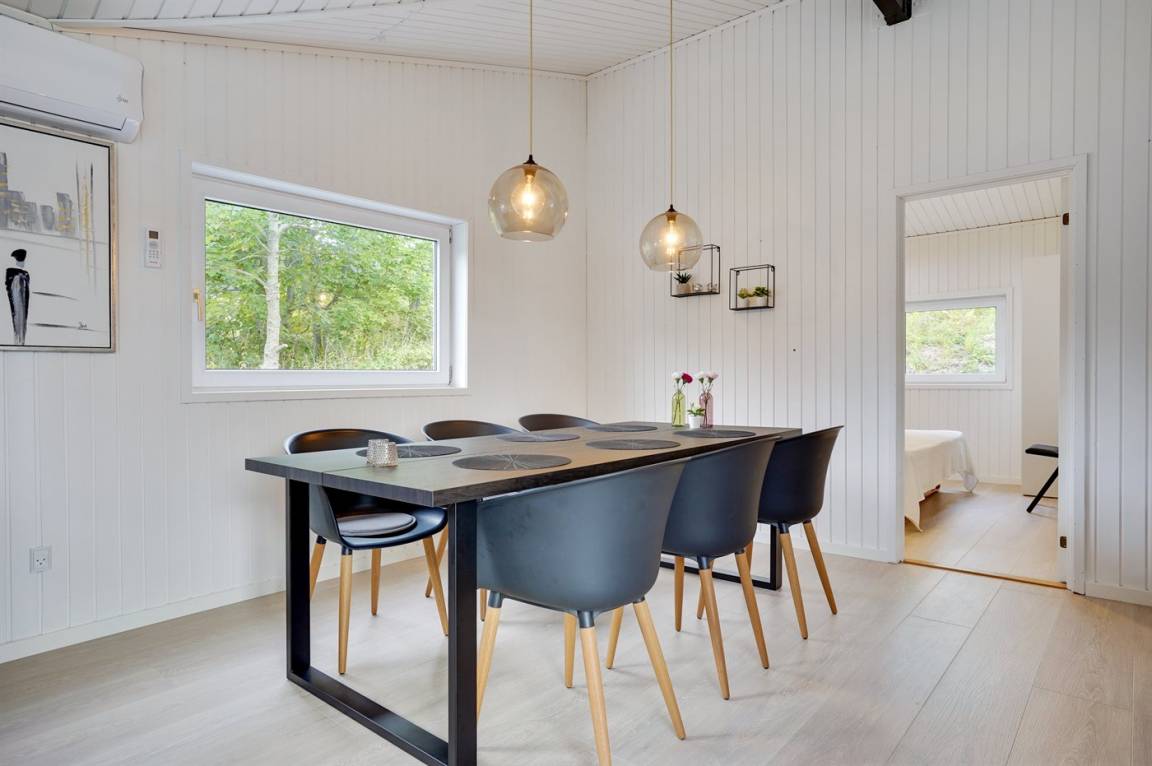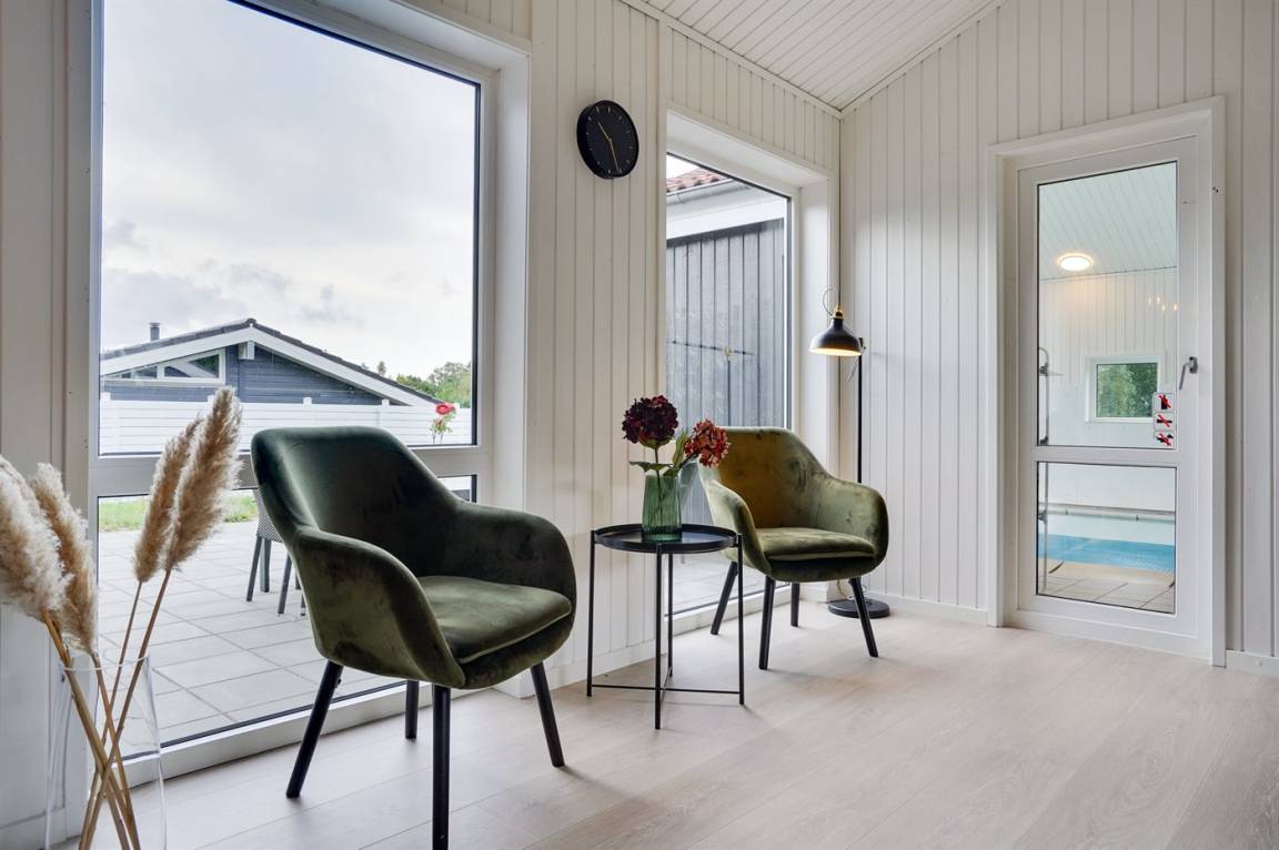 Ein herrliches, geschmackvoll eingerichtetes Ferienhaus mit einem schönen Swimmingpool. Das Haus wurde 2021 renoviert und zeichnet sich durch seine helle und moderne Inneneinrichtung aus. Die Lage in den Hügeln am Lyngsbæk Strand, auf einem ruhigen und schönen Grundstück, ermöglicht es die Natur und die Aussicht auf die Umgebung von den schönen Terrassenbereichen aus zu genießen.