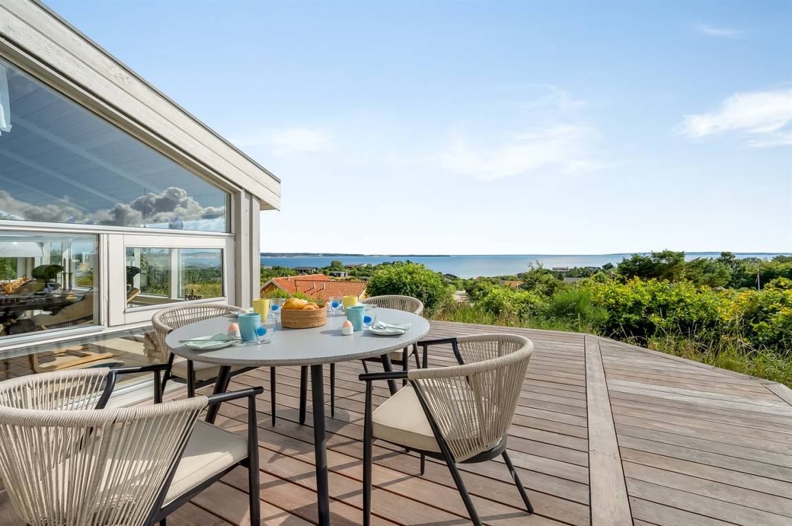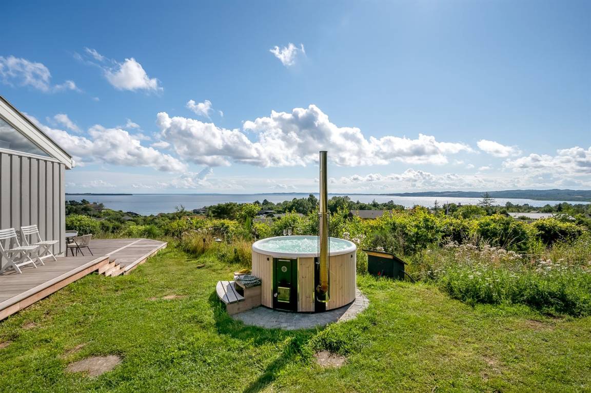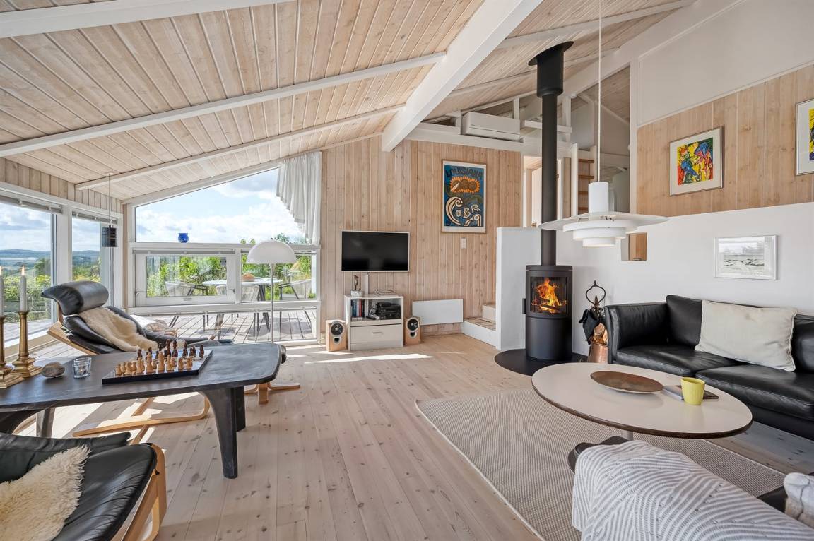 Dieses fantastische Ferienhaus liegt einzigartig auf dem Hügel über Ebeltoft. Hier hast du wohl eine der besten Aussichten der Stadt über die Ebeltoft Bucht und den Nationalpark Mols Bjerge.