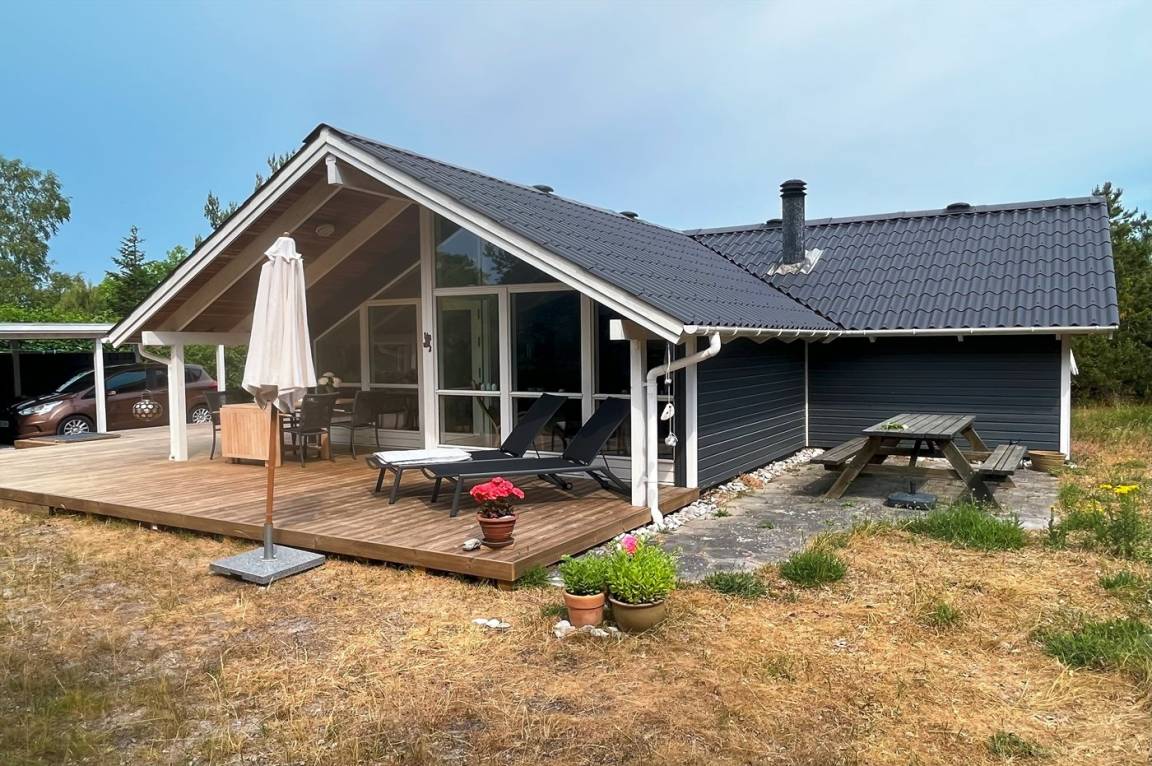 DraußenDie Ferienunterkunft liegt auf einem 1400 m² großen Naturgrundstück. Die Entfernung zum Meer beträgt 300 m. Die nächste Einkaufsmöglichkeit liegt 3500 m entfernt. Es steht ein offenes Terrassenareal zur Verfügung. Außerdem gibt es überdachte Terrasse. Es steht ein Carport zur Verfügung. Parkplatz auf dem Grundstück.