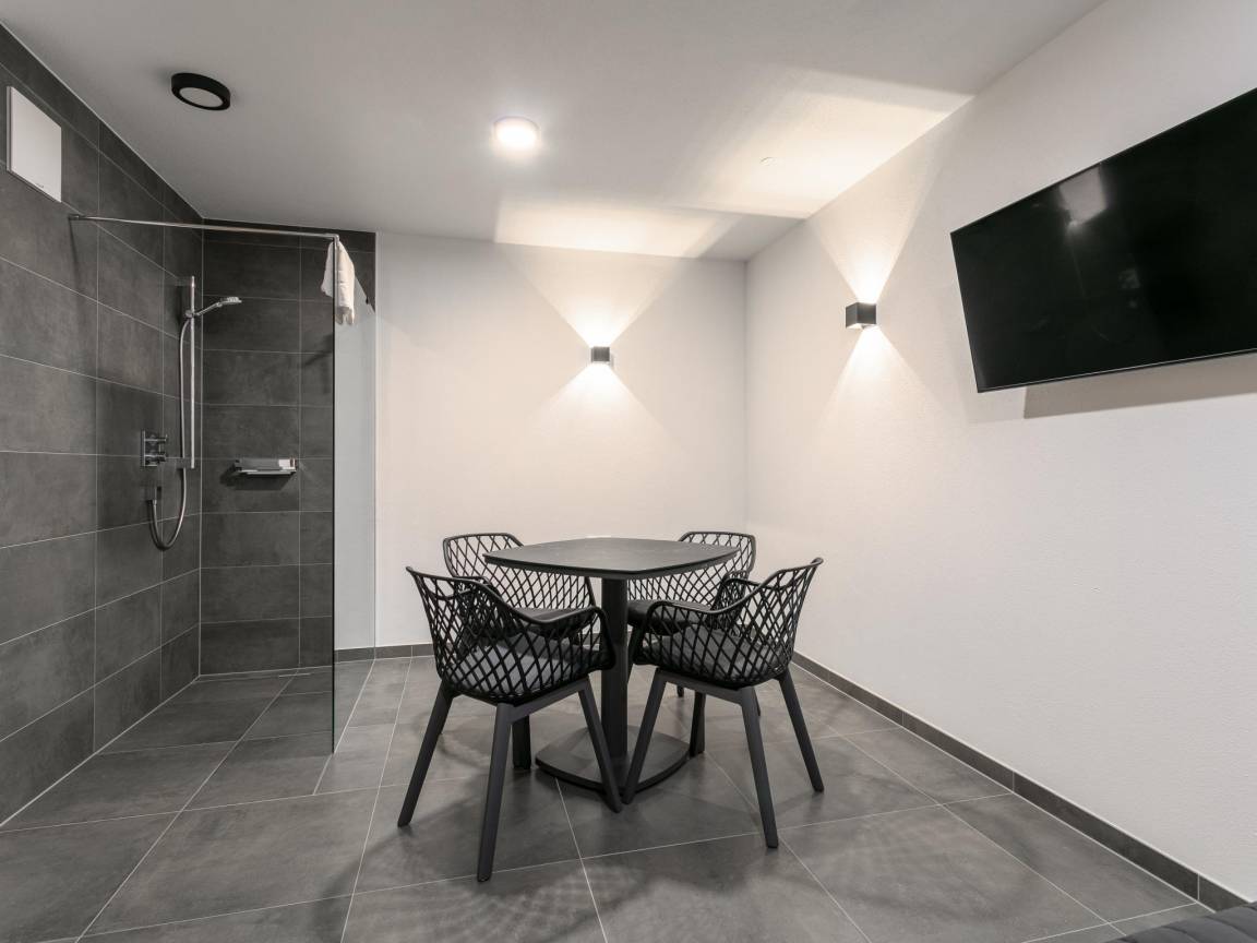 Souterrain: Ruheraum mit TV, Sitzecke(4 Personen), Sitzecke, Dusche(ebenerdige Dusche), Sauna(alleinige Nutzung) , Skiabstellraum mit Wäschetrockner, Waschmaschine, Staubsauger, Skischuhheizung, Bügelbrett, Bügeleisen , 2x Liegen