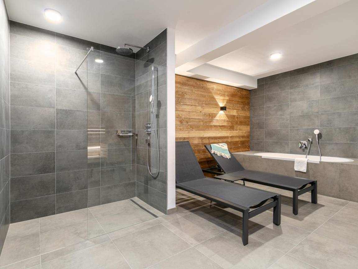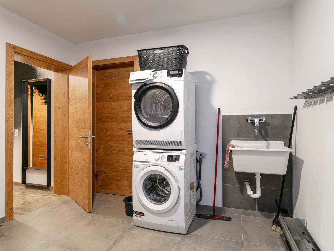 Souterrain: Ruheraum mit Badewanne, Dusche, Sauna , Skiabstellraum mit Wäschetrockner, Waschmaschine, Skischuhheizung