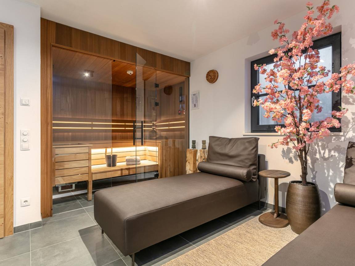 Layout : Parterre: Eingang, Saunaraum mit Dusche(Regen), Sauna , Skiabstellraum mit Wäschetrockner, Waschmaschine, Skischuhheizung , 3x Liegen