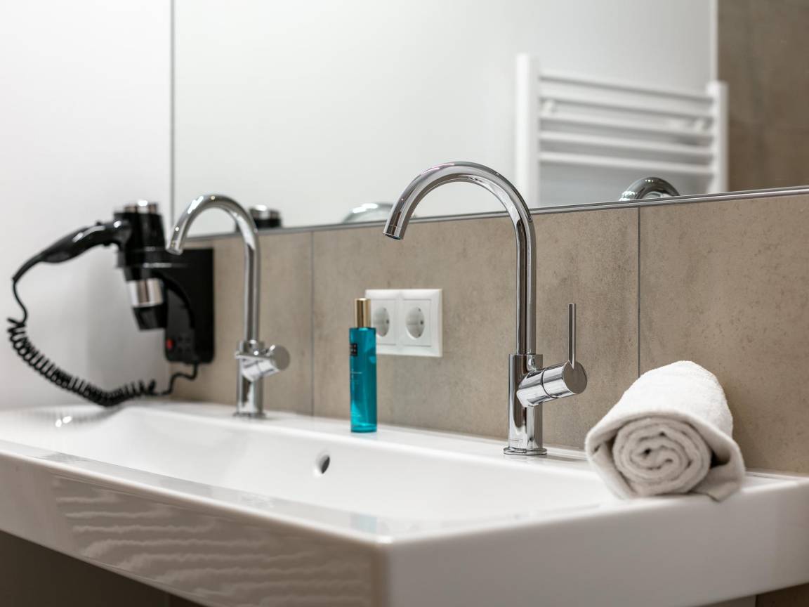 Layout : Parterre: Eingang, Schlafzimmer mit 2x Einzelbett(90 x 210 cm) , 2x Schlafzimmer mit Doppelbett(180 x 210 cm) , 2x Badezimmer mit Dusche, Waschbecken, Toilette, Föhn