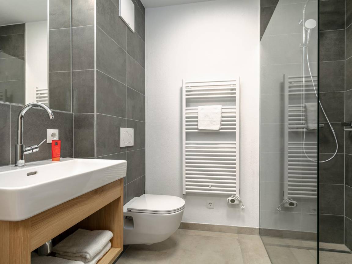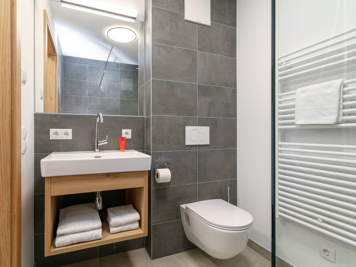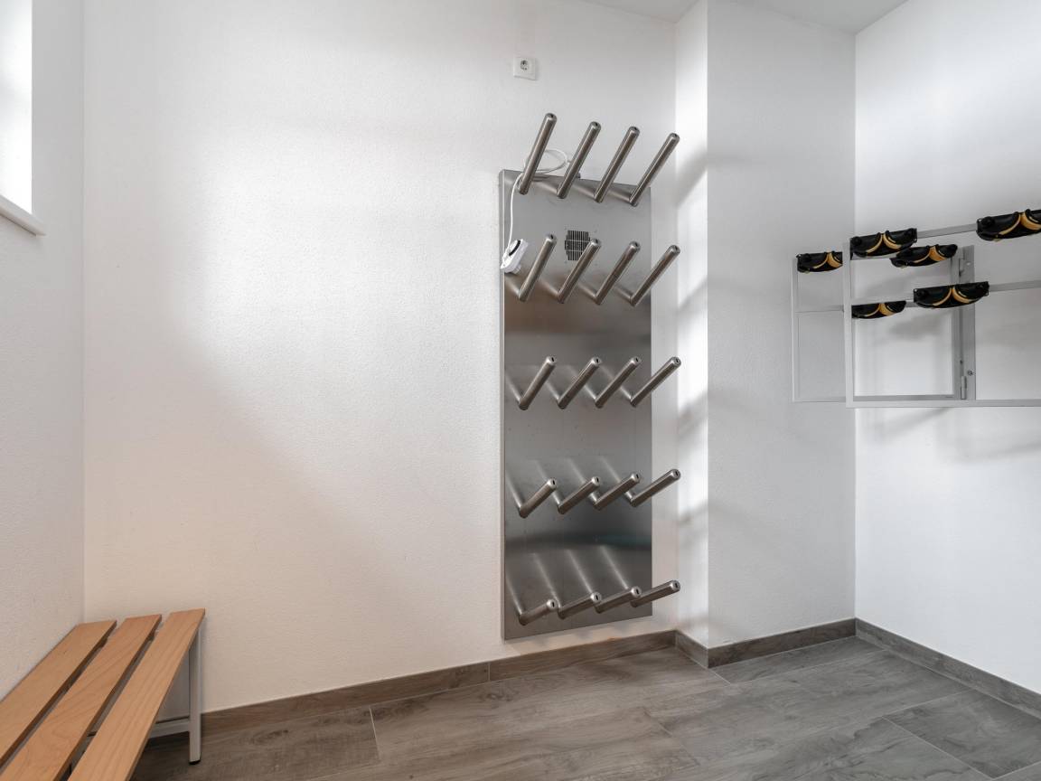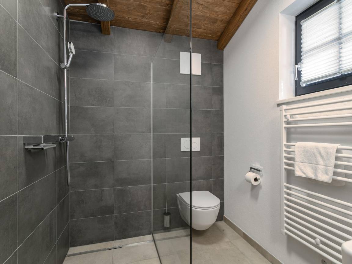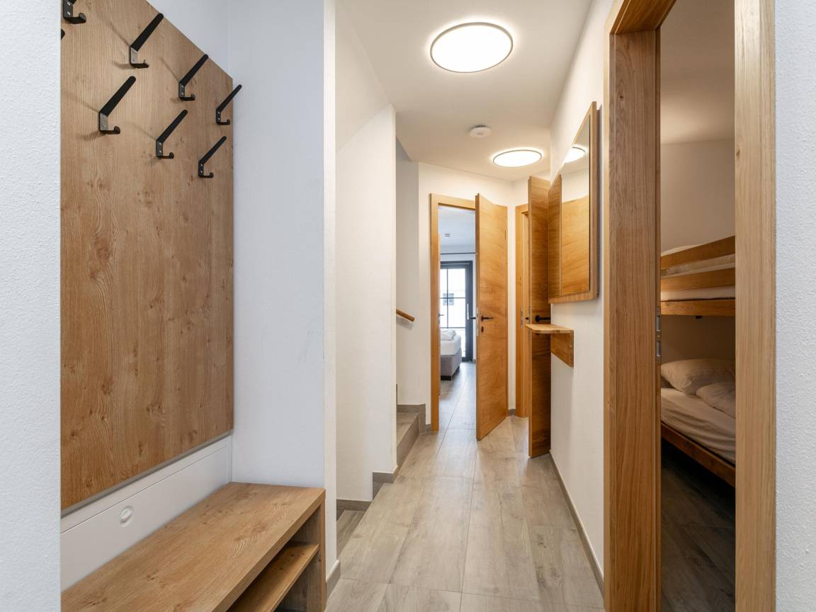„Es gab zwei Schattenseiten. Dies ist wichtig, weil wir mit 9 Erwachsenen in diesem Chalet waren und das ist nicht wirklich möglich. Das Schlafzimmer im Erdgeschoss mit 2x Doppelstockbetten war sehr klein in der Fläche und die Größe der oberen Betten war sehr schmal. In unserer Gruppe mussten 3x Erwachsene hier schlafen und das ist nicht möglich. Die oberen Betten sind wirklich nur für Kinder oder sehr kleine schmale Erwachsene geeignet und es gab auch keine Gehfläche um die beiden Etagenbetten herum. Da man im Skiurlaub sehr viel Zeug mit sich herumträgt, war das unmöglich! Wir haben jetzt 1x Matratze in den Saunaraum gelegt, weil diese Person sehr locker ist, aber es hat keinen Spaß gemacht. Ein 2. Nachteil war, dass die Villa nicht wirklich ruhig ist. Sie liegt direkt an einer stark befahrenen Straße und man hört auch nachts die Autos vorbeirasen. Aber.... das war für uns kein Problem, wohlgemerkt! Nach dem ganzen Tag auf der Piste war man sowieso todmüde, und wir haben in den schönen Betten wunderbar geschlafen! So haben wir es gelöst und hatten ansonsten einen fantastischen Aufenthalt in dieser schönen Villa! Aber als Tipp: Buchen Sie nie mehr als 8 Erwachsene und 2 Kinder.“