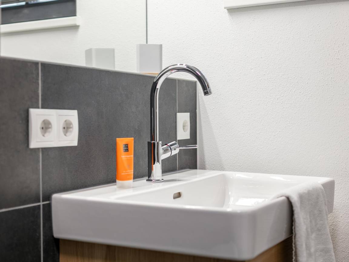 In der 1. Etage: offene Küche mit Wasserkocher, Dunstabzugshaube, Kaffeemaschine(Espresso, Filter), Backofen, Mikrowelle, Geschirrspüler, Kühlschrank, Tiefkühlschrank , Wohn/Esszimmer mit Doppelschlafcouch(200 x 170 cm), TV, Esstisch(10 Personen), Sitzecke(7 Personen) , Schlafzimmer mit Badezimmer mit Doppelbett(180 x 210 cm), TV, Dusche, Waschbecken, Toilette, Föhn , Balkon, Gartenmöbel(8 Personen)