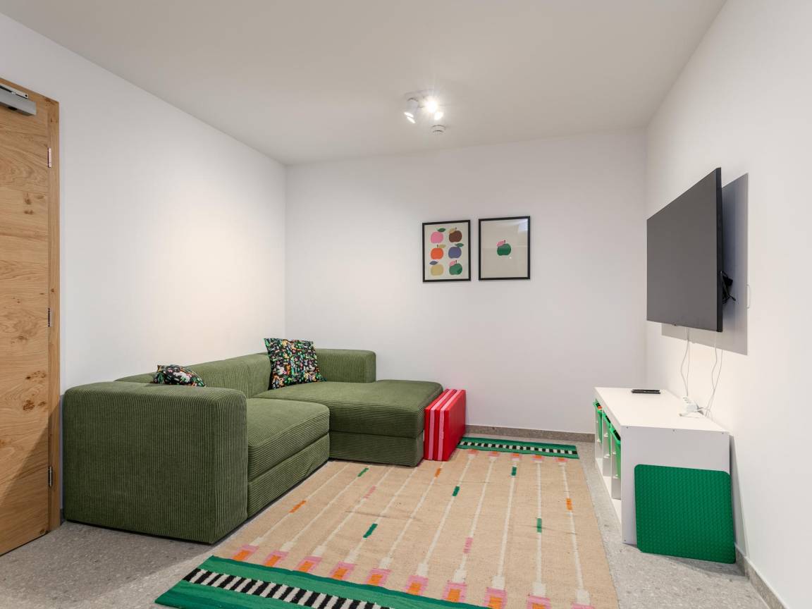 Souterrain: Spielzimmer mit TV, Sitzecke , Skiabstellraum mit Wäschetrockner, Waschmaschine, Skischuhheizung , Dusche, Sauna, 2x Liegen