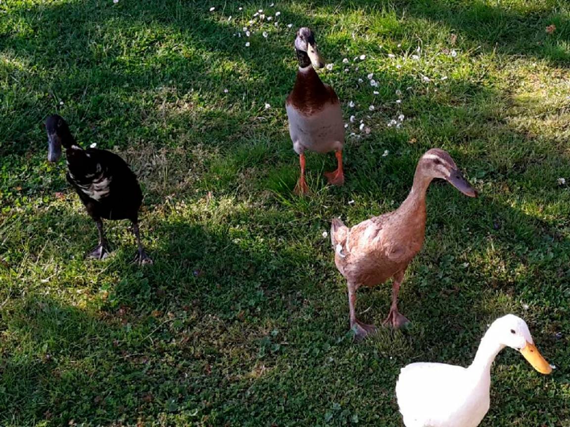 Auf dem Hof gibt es Hühner, Laufenten, Enten und Katzen. Direkt nebenan können Sie im Hofladen von Bauer Drewes einkaufen.