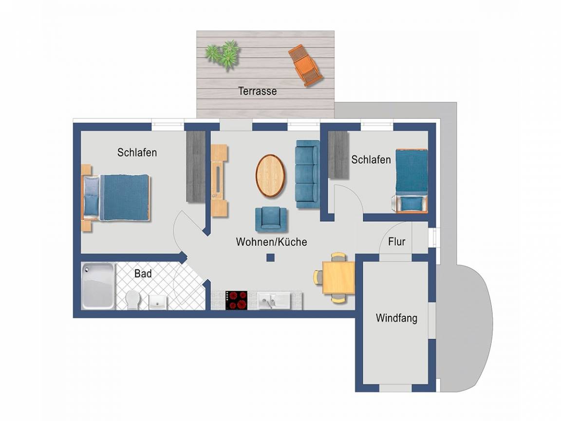 52 m² Ferienwohnung ∙ 2 Schlafzimmer ∙ 4 Gäste