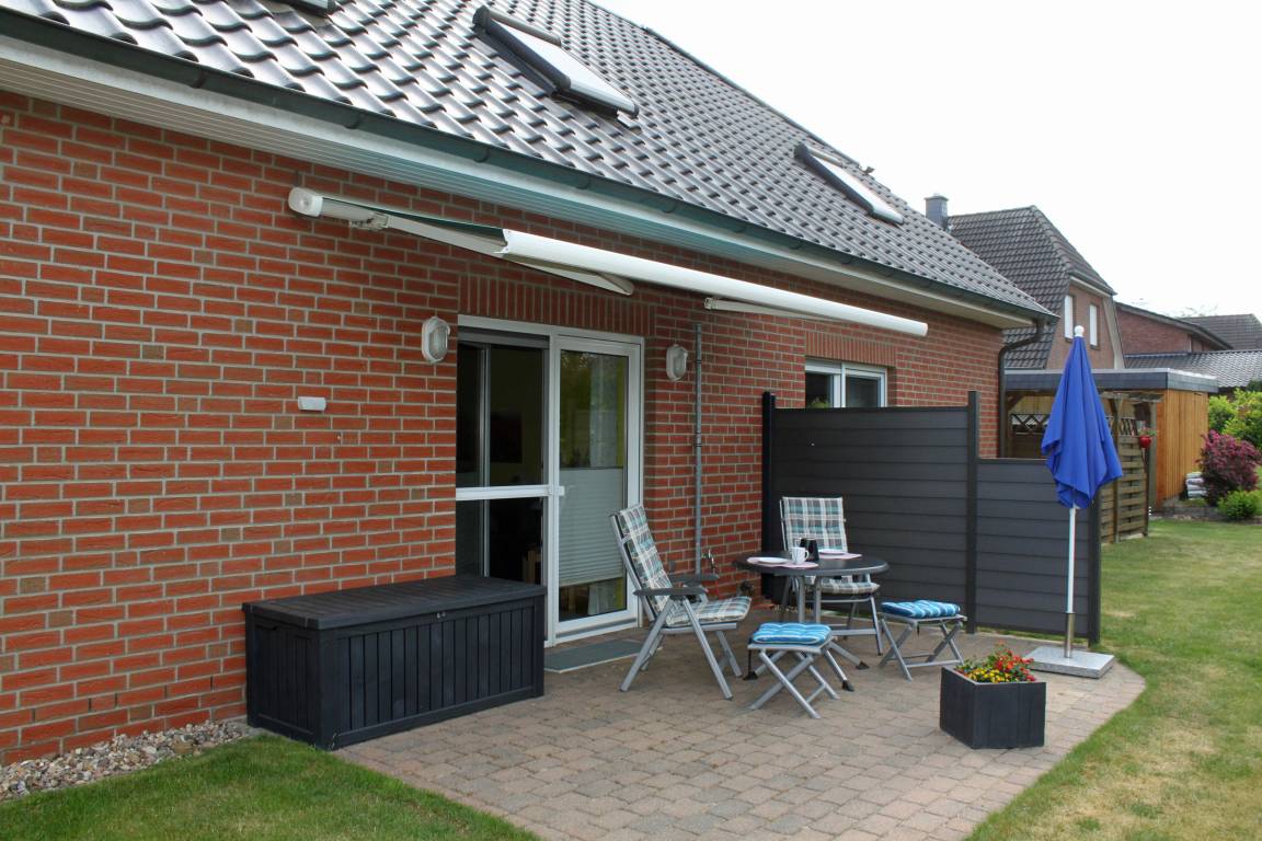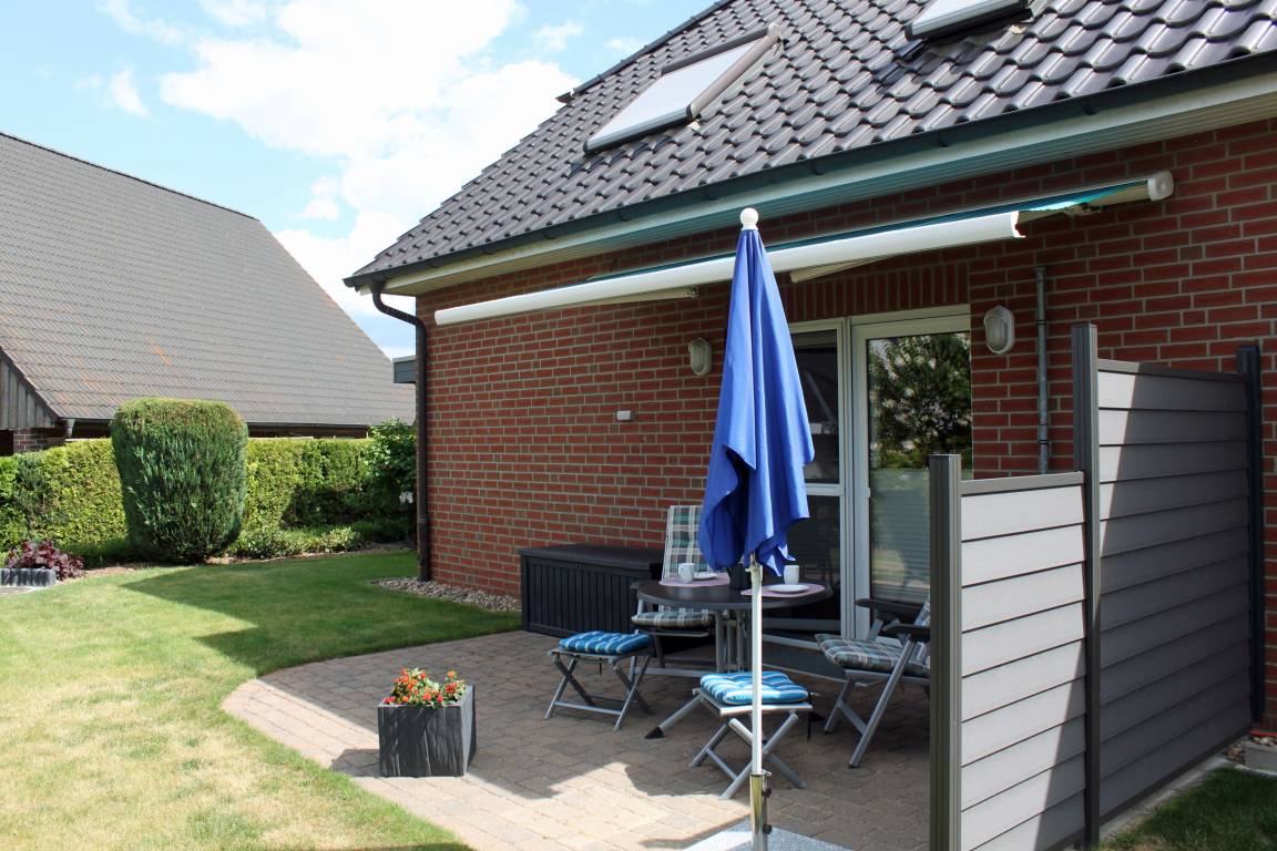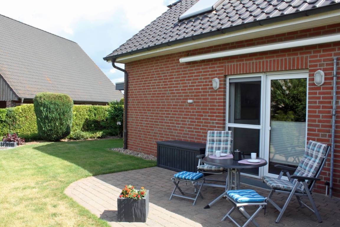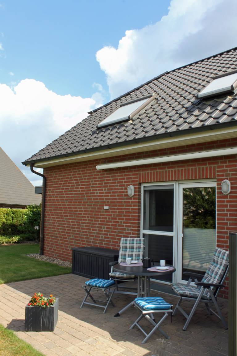 Die Terrasse liegt geschützt und sonnig, so dass Sie hier ganz in Ruhe die Sonne genießen oder den Tag mit einem gemütlichen Draußen-Frühstück starten können.