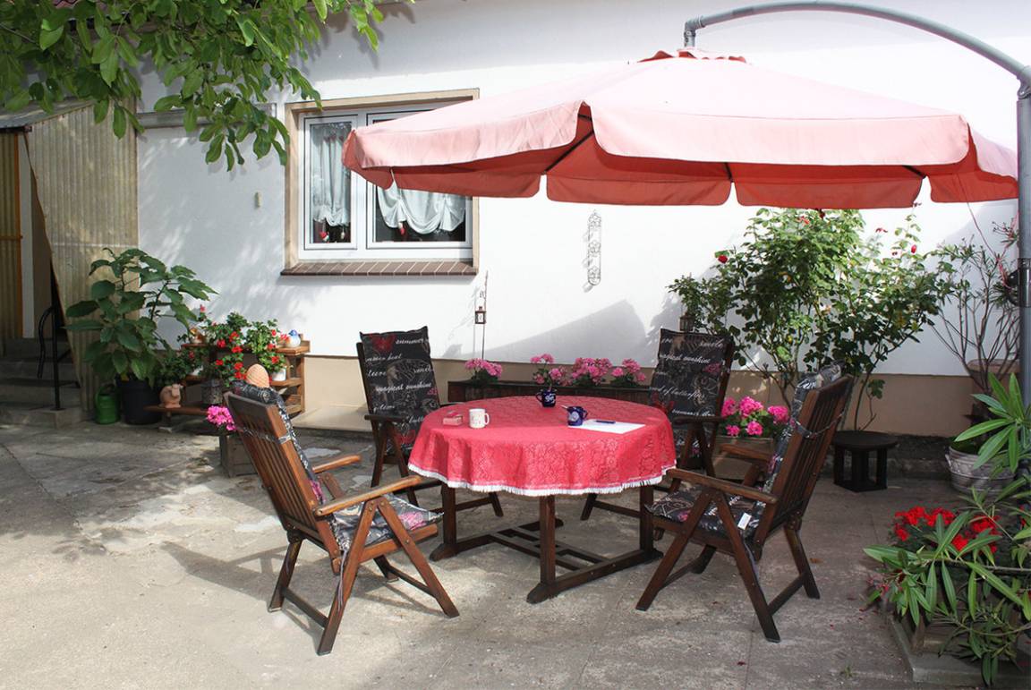 Die Terrasse liegt geschützt hinter dem Haus und ist mit Gartenmöbeln und Grill ausgestattet. Hier können Sie Sonne tanken und die Seele baumeln lassen und bei einem gemütlichen Frühstück Ihren Urlaubstag planen oder den Tag mit einem Grillabend ausklingen lassen.