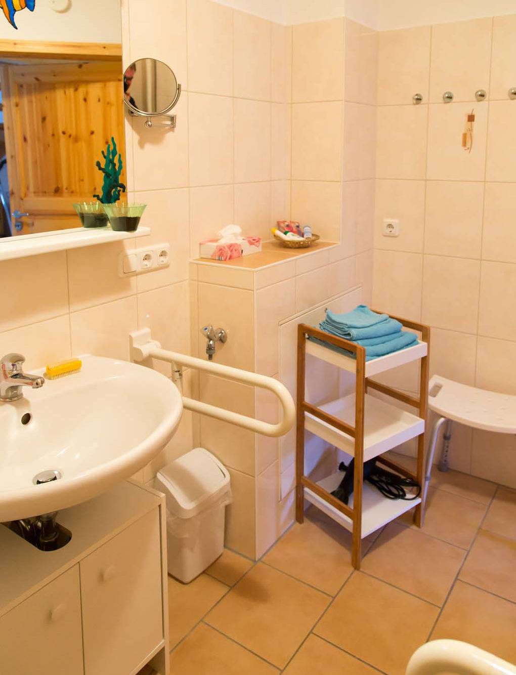 „Sehr nette, hilfsbereite Vermieter. Habe mich dort wohl gefühlt. Die allgemeine Ausstattung und die Haltevorrichtungen in der Dusche/Toilette waren für mich ideal. Ich werde wiederkommen.“
