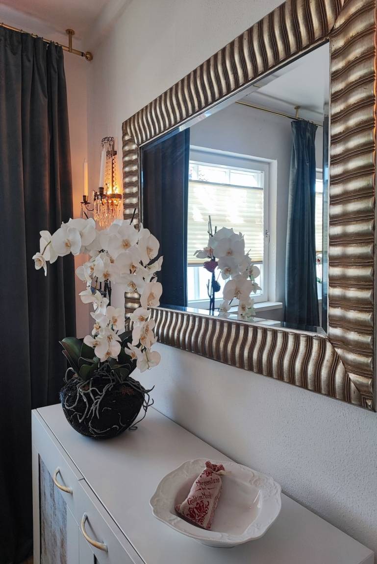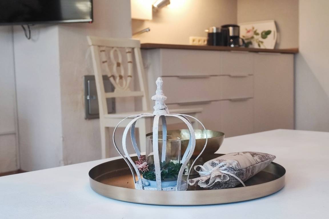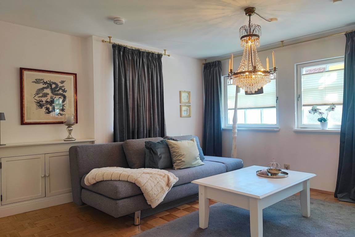 Sie wohnen in zwei Zimmern auf 45 qm in dem mit liebevollen Details eingerichteten Wohnung. Im kleinen kuscheligen Schlafzimmer steht ein 160x200 Doppelbett mit altem Kleiderschrank im Vintage Stil. Zudem gibt es ein separates Duschbad. Sie verfügen über ein Wohnzimmer mit einem Sofa (Schlafsofa 140x200) und einem offenen Küchenbereich in dem sie alles finden, was sie für einen Urlaub benötigen.
