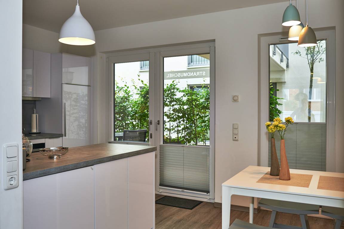 Die "Strandmuschel" liegt im Gebäude "Jungfernstieg 1", das mit weiteren Gebäuden das "Quartier Hafenspitze" bildet; in exklusiver Lage direkt an der Hafenpromenade. Ein eigener PKW-Stellplatz in der hauseigenen Tiefgarage und das Erreichen Ihres Feriendomizils über einen Fahrstuhl, sorgen für ein entspanntes und barrierefreies Ankommen. Der Abstellraum für Fahrräder lädt Sie dazu ein, Eckernförde und seine Umgebung auch aktiv zu erkunden.