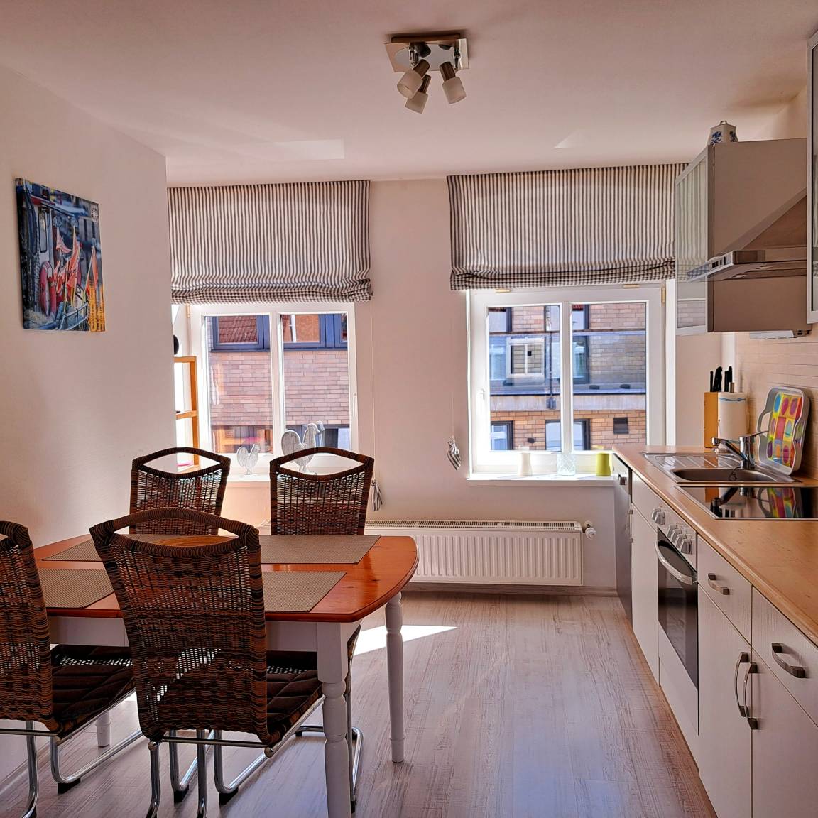 So einfach ist es, wenn Sie in unserer "Strandbutze" wohnen. Diese Ferienwohnung befindet sich im 1.Stock eines vollsanierten Hauses mitten in der Altstadt und ist ca. 100 m vom Strand entfernt. Zahlreiche Restaurants und Cafés befinden sich in der Fußgängerzone, nur wenige Schritte von der Strandbutze entfernt. Auch zum Hafen ist es nur ein kleiner Sprung.